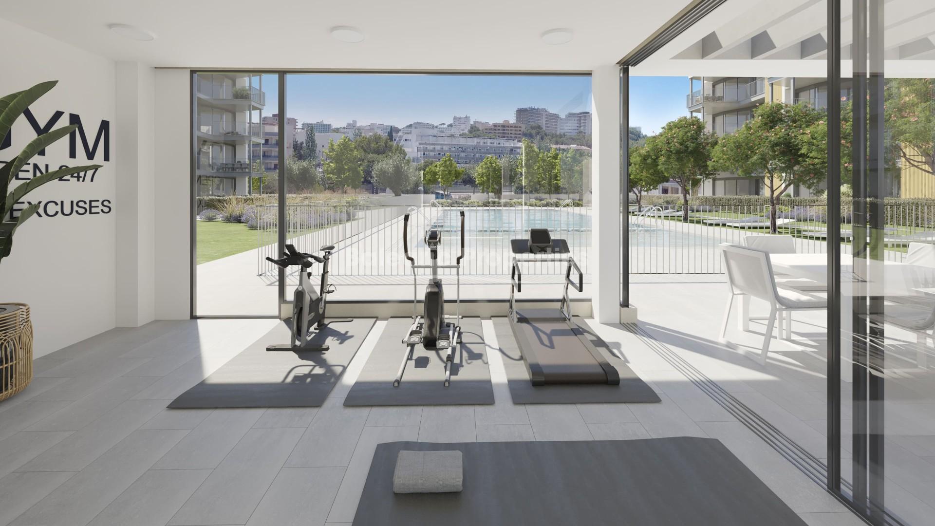 Moderne Wohnungen zum Verkauf in Palmanova mit Gemeinschaftspool, Gärten und Fitnessstudio in hervorragender Lage, zu Fuß erreichbar von mehreren Stränden und allen lokalen Annehmlichkeiten.