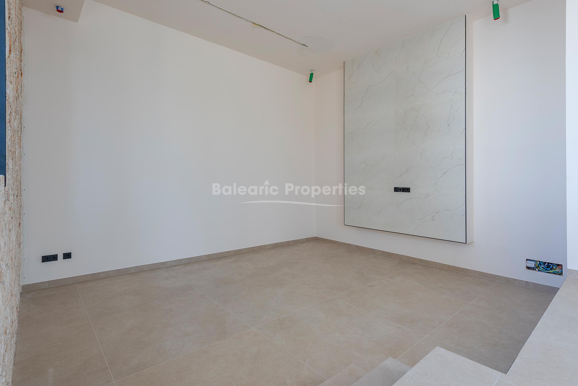 Das Haus wird zwei Stockwerke plus ein Kellergeschoss haben. Im Erdgeschoss finden Sie eine offene Raumaufteilung mit raumhohen Glastüren, die für viel natürliches Licht sorgen. Es gibt eine moderne Einbauküche mit Sitzinsel, einen Essbereich, ein gemütliches, versunkenes Wohnzimmer mit Kamin und einen direkten Zugang zu den großen Terrassen und dem 15 x 10 m großen Swimmingpool.