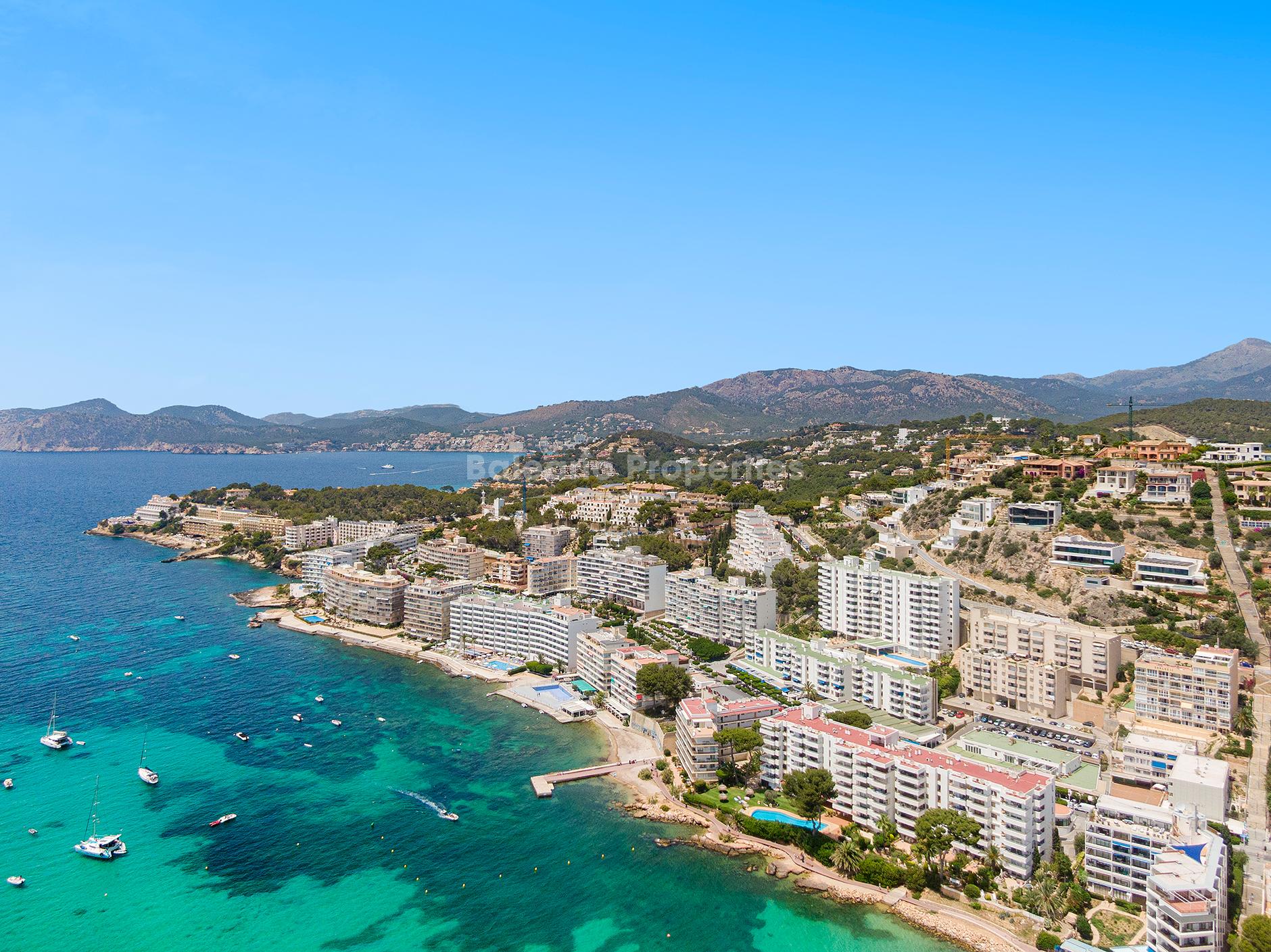 Santa Ponsa zählt zu den begehrtesten Wohnlagen im Südwesten Mallorcas, bekannt für seinen entspannten Küstenlebensstil und die hervorragende Infrastruktur. Die Gegend bietet wunderschöne Strände, renommierte Golfplätze, Yachthäfen sowie eine grosse Auswahl an Restaurants und Cafés. Zudem ist Palma de Mallorca mit seinem internationalen Flughafen bequem erreichbar, was die Lage sowohl für den dauerhaften Wohnsitz als auch für Ferienaufenthalte attraktiv macht. Diese Kombination aus spektakulärer Aussicht, modernem Komfort und erstklassiger Lage macht die Villa besonders interessant für internationale Käufer.