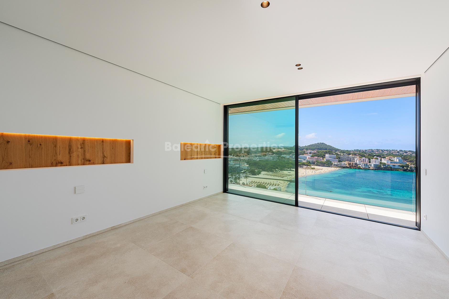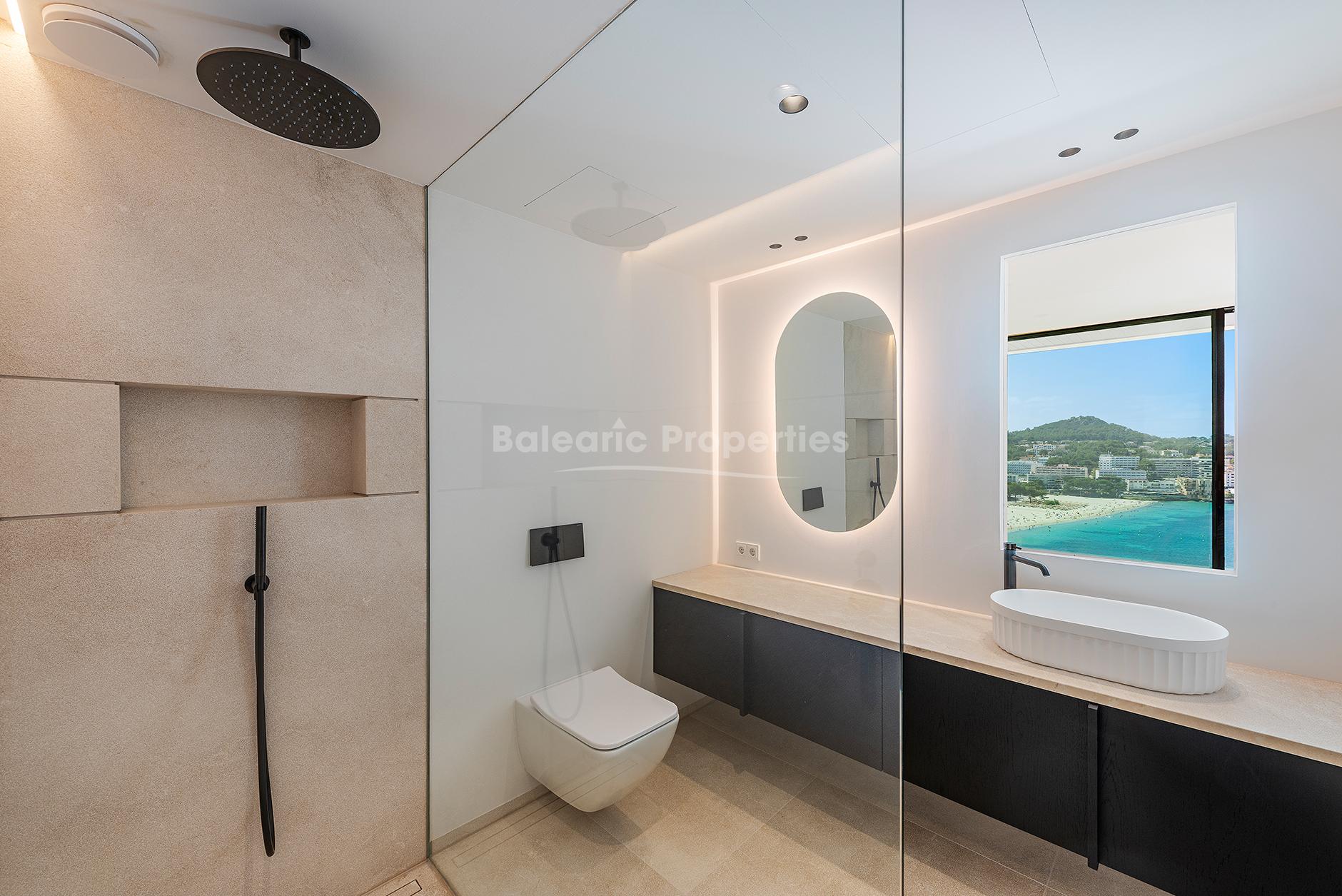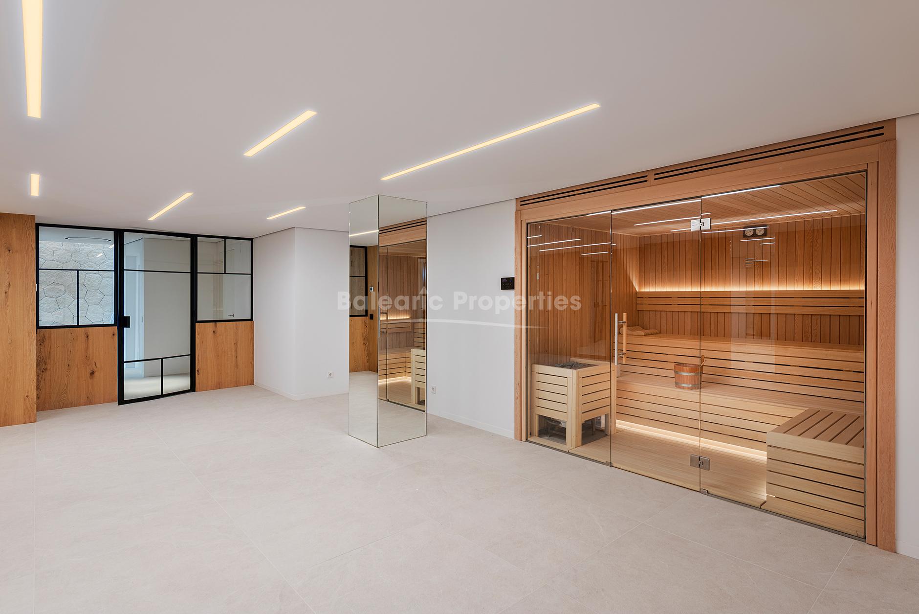 Diese moderne Villa, zum Verkauf in der begehrten Wohnlage Santa Ponsa, verbindet mediterranen Charme mit zeitgenössischer Architektur. Fertiggestellt im Jahr 2025 und auf drei Ebenen verteilt, ist die nach Süden ausgerichtete Immobilie den ganzen Tag über von reichlich natürlichem Licht durchflutet. Die erhöhte Lage bietet sowohl einen atemberaubenden Panoramablick auf das Meer, als auch auf die umliegenden Berge und schafft eine ruhige, offene Atmosphäre. Das Design legt Wert auf klare Linien, hochwertige Materialien und ein nahtloses Zusammenspiel von Innen- und Außenbereichen, das Haus ist ein elegantes und zugleich komfortables Familienheim.