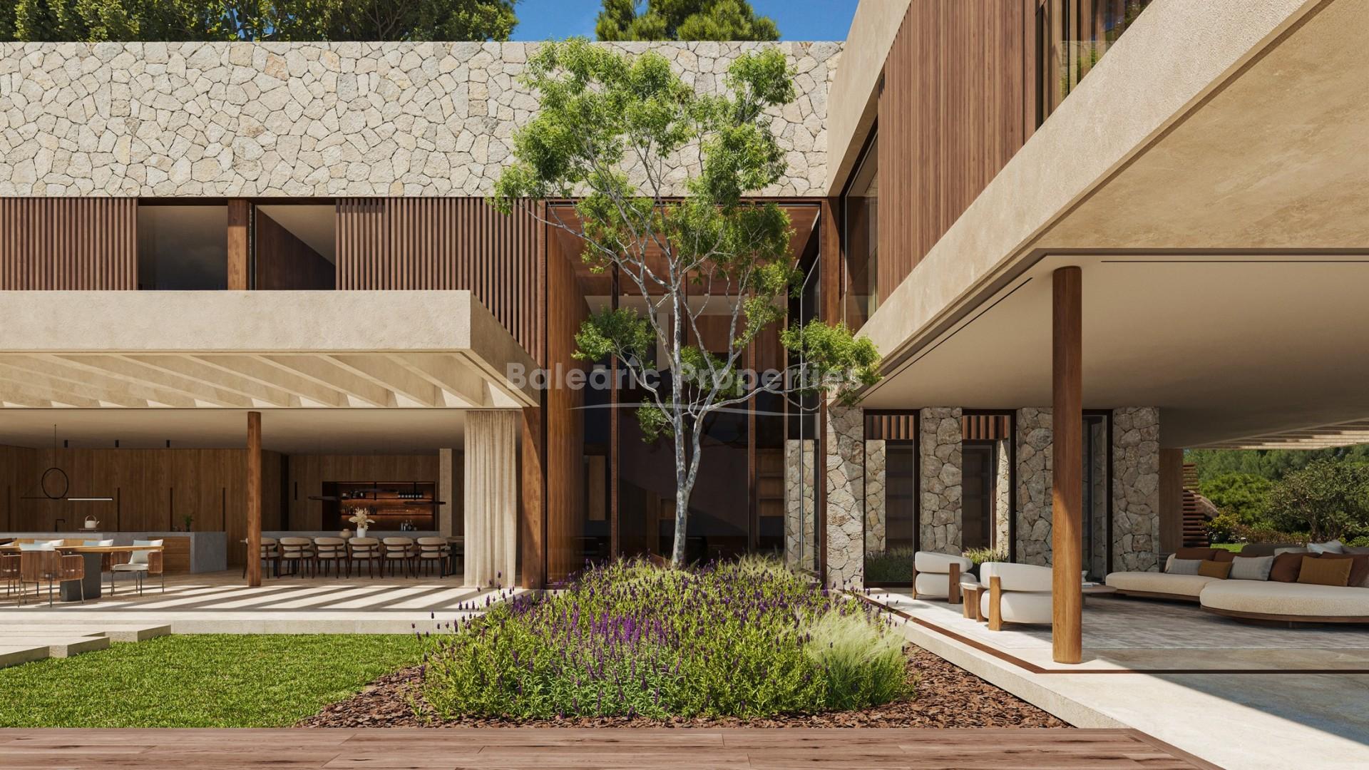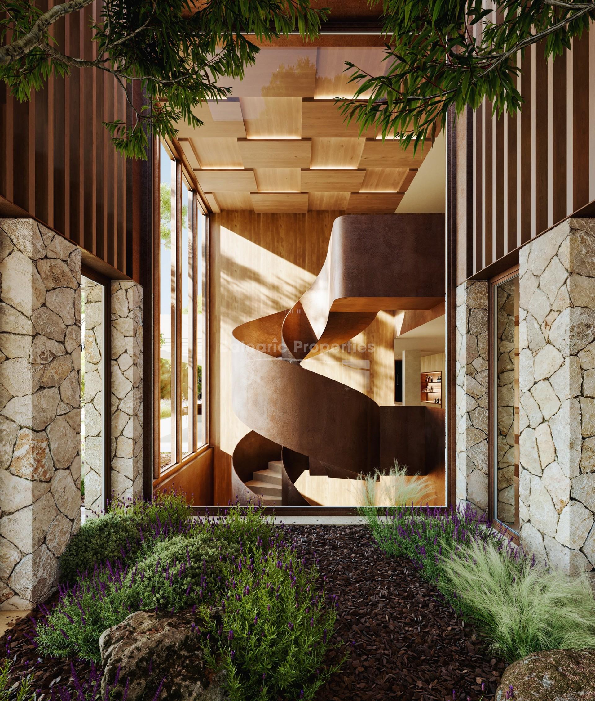 Die genehmigten Pläne sehen eine zweistöckige Residenz mit großzügigen Proportionen und einer sorgfältig durchdachten Raumaufteilung vor. Das Projekt umfasst insgesamt acht Schlafzimmer und acht Badezimmer, die sich auf das Haupthaus und ein separates Gästehaus verteilen, sowie zwei zusätzliche Gästetoiletten. Zwei Swimmingpools sind geplant, von denen einer beeindruckende 25 Meter lang ist, sowie weitläufige Landschaftsgärten und ein zentraler Innenhof.