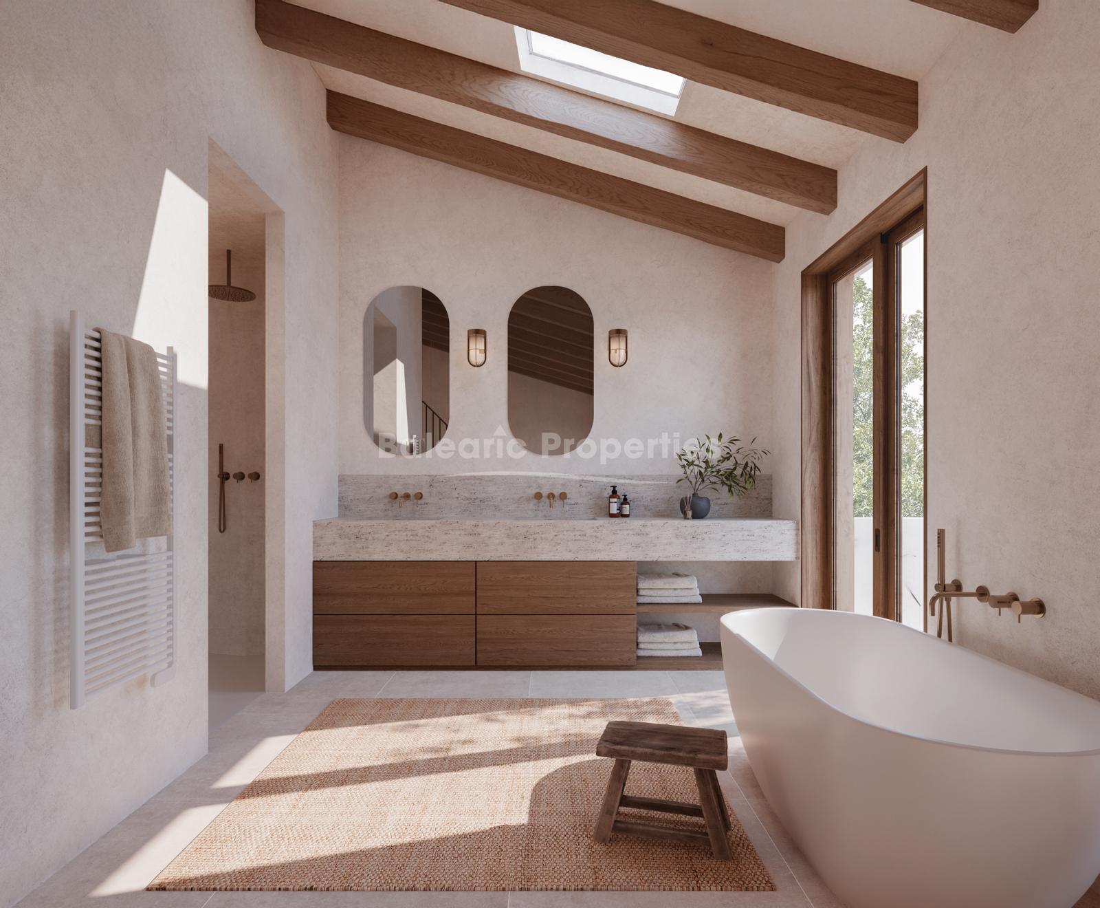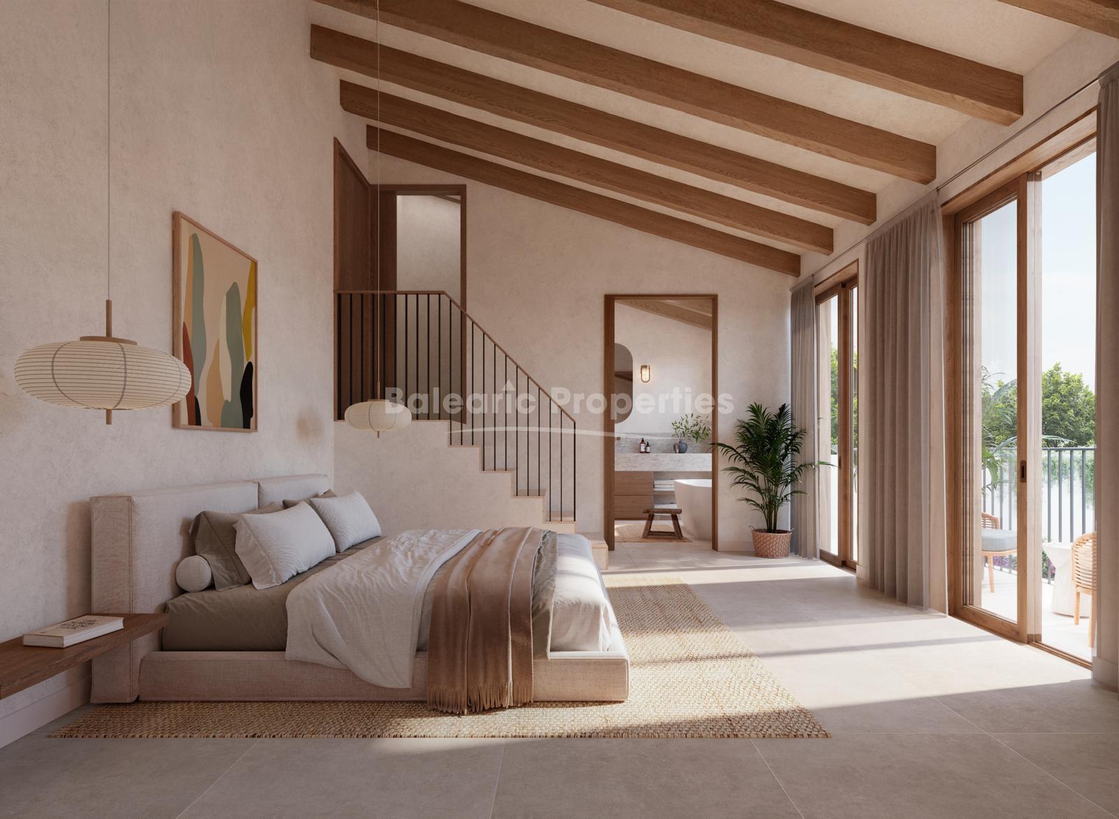 The project blends modern architecture with Mallorcan character, creating a refined home with spacious interiors and seamless indoor–outdoor living. The design features a bright open-plan kitchen with dining area, multiple bedrooms, expansive terraces, a private swimming pool and a garage. A separate one-bedroom guest apartment with independent access provides additional flexibility, ideal for visitors, extended family or staff accommodation.
