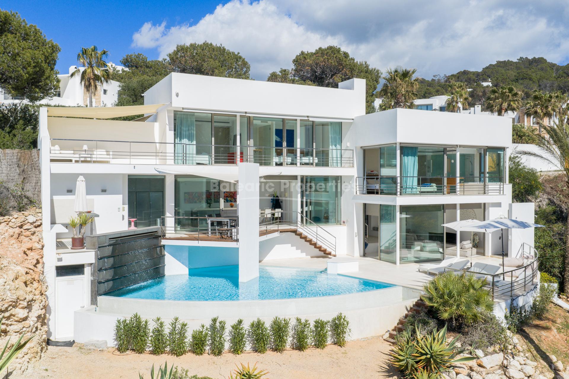 Equipped with air conditioning, a comprehensive alarm system, and advanced smart-home technology, this property offers the comfort and lifestyle of a five-star residence in an exclusive coastal setting. This villa presents an exceptional opportunity to own a prestigious home near Cala Vadella beach, combining luxury living with strong rental potential.