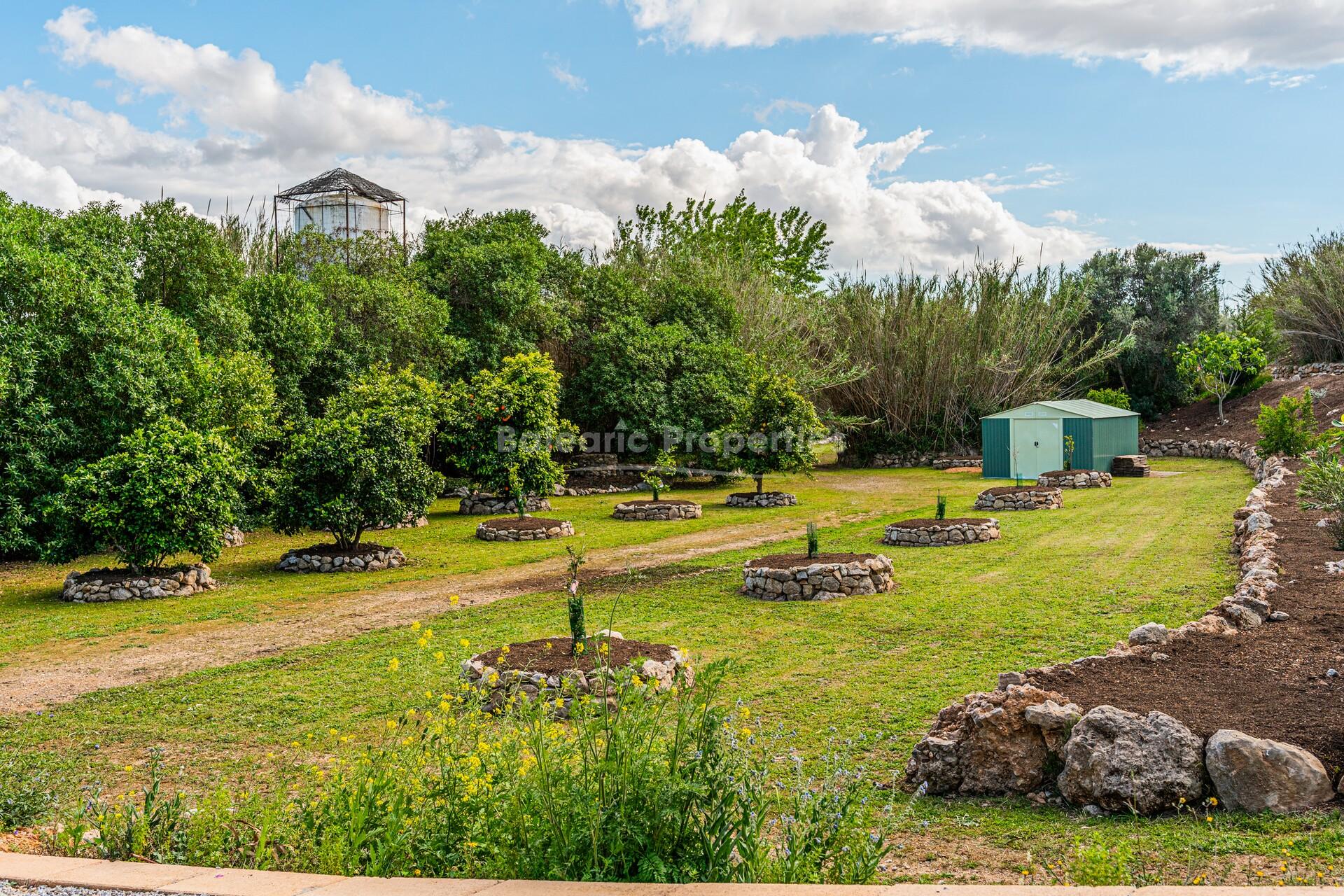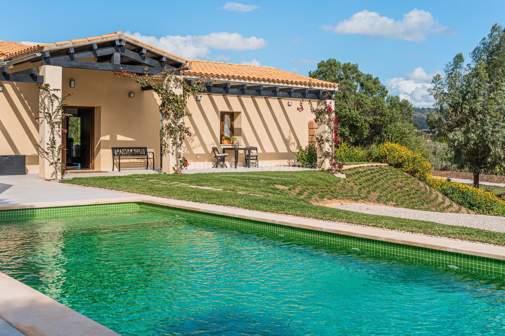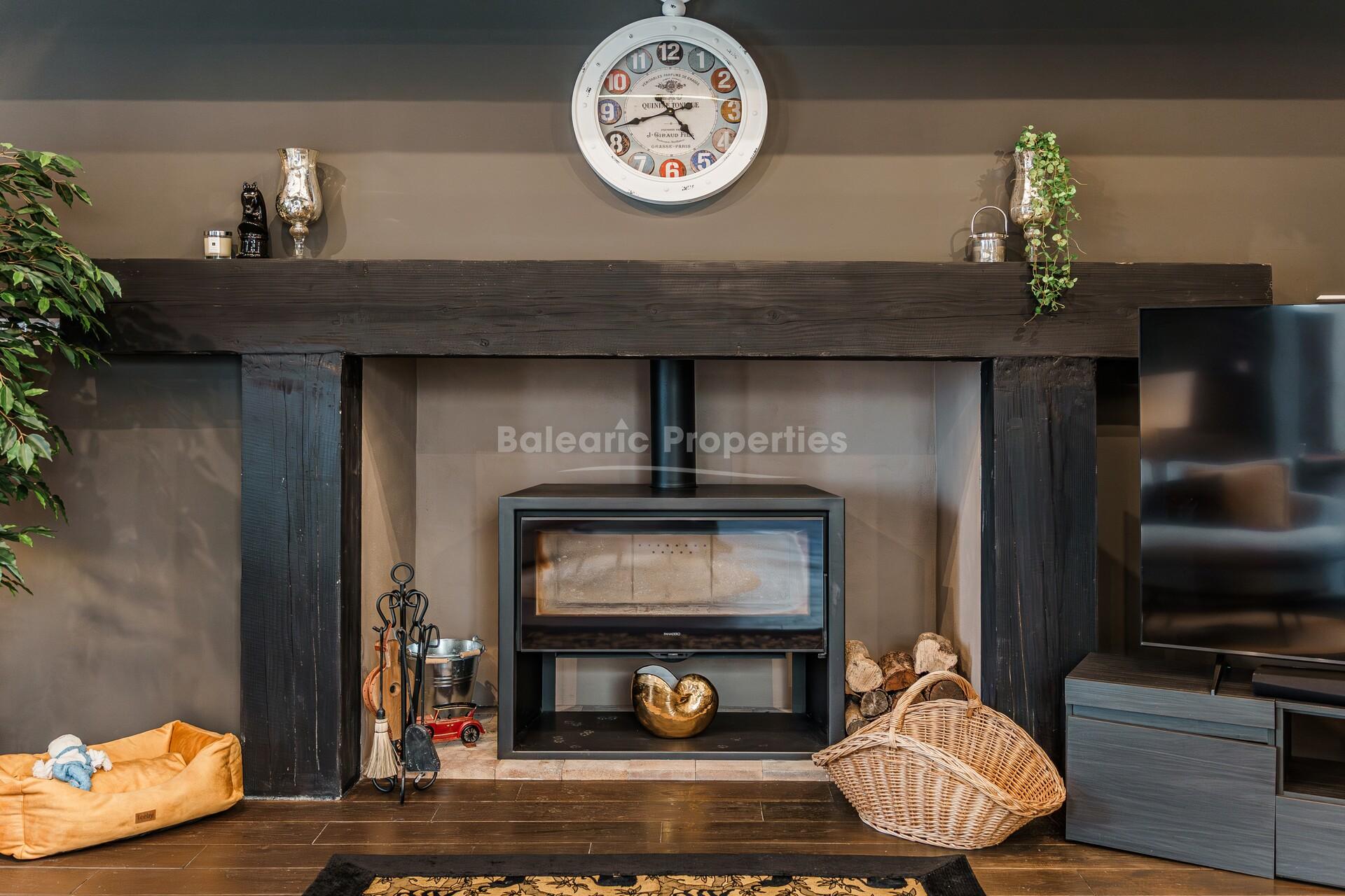 This exceptional eco family house for sale is set in the tranquil countryside of Marratxí, combining luxury living with ecological responsibility. Completely off-grid, it is powered by 38 high-efficiency solar panels and a dedicated battery system. The 26,000 m² plot includes an independent well holding 40,000 litres of water and an additional underground storage that can supply the property for a whole year. Heating is via a heat pump, with dual hot and cold air conditioning throughout.