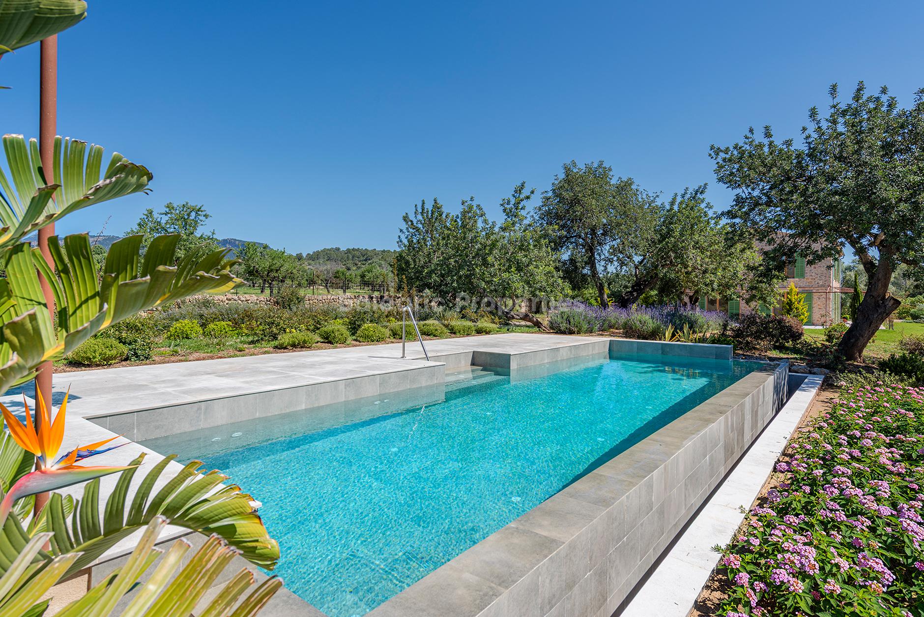 Esta impresionante villa nueva ocupará una parcela de unos 15.000m2 con maravillosas vistas panorámicas de los alrededores y se ofrece a la venta entre los bonitos pueblos de Santa María y Alaró, a poca distancia de todos los servicios locales.