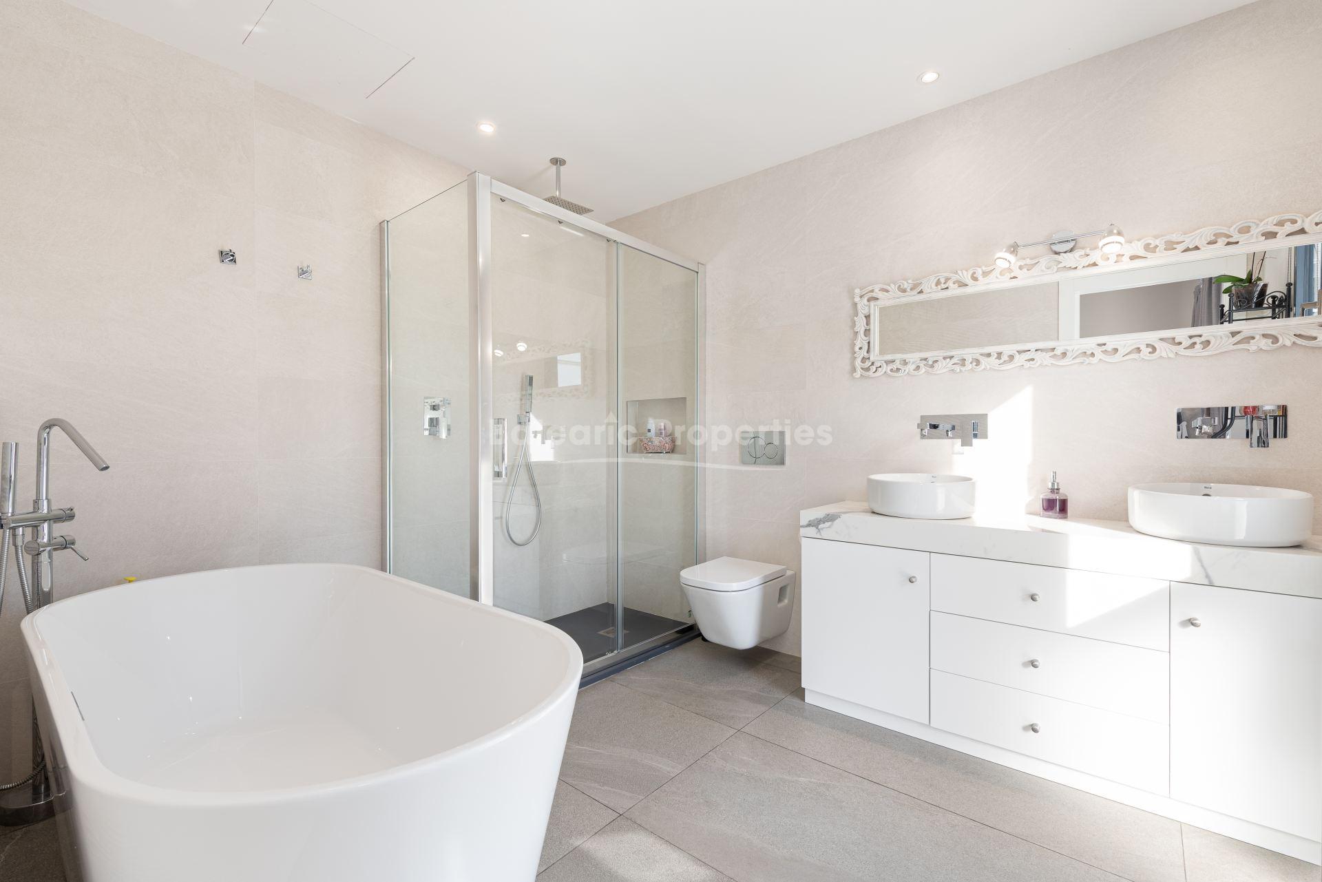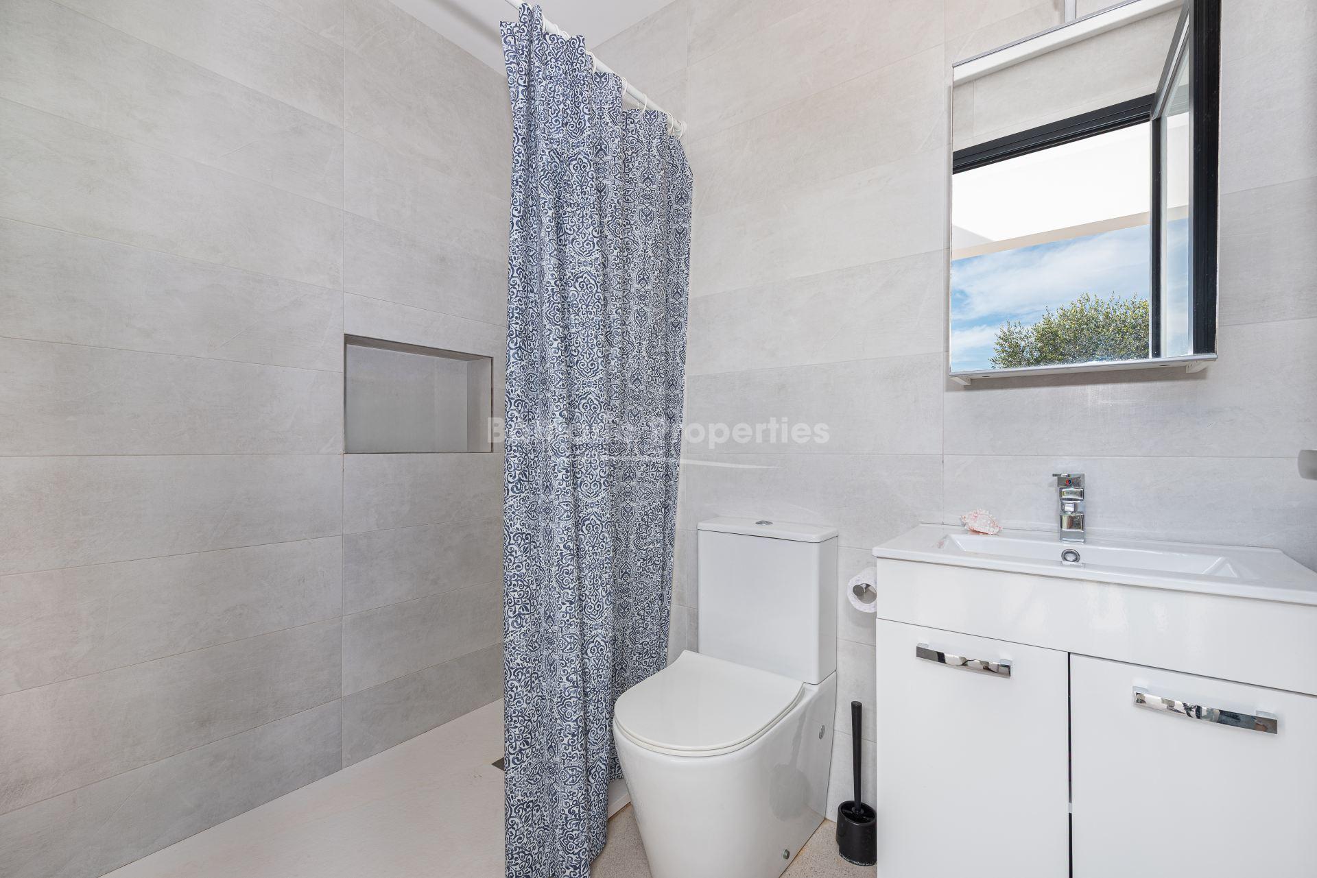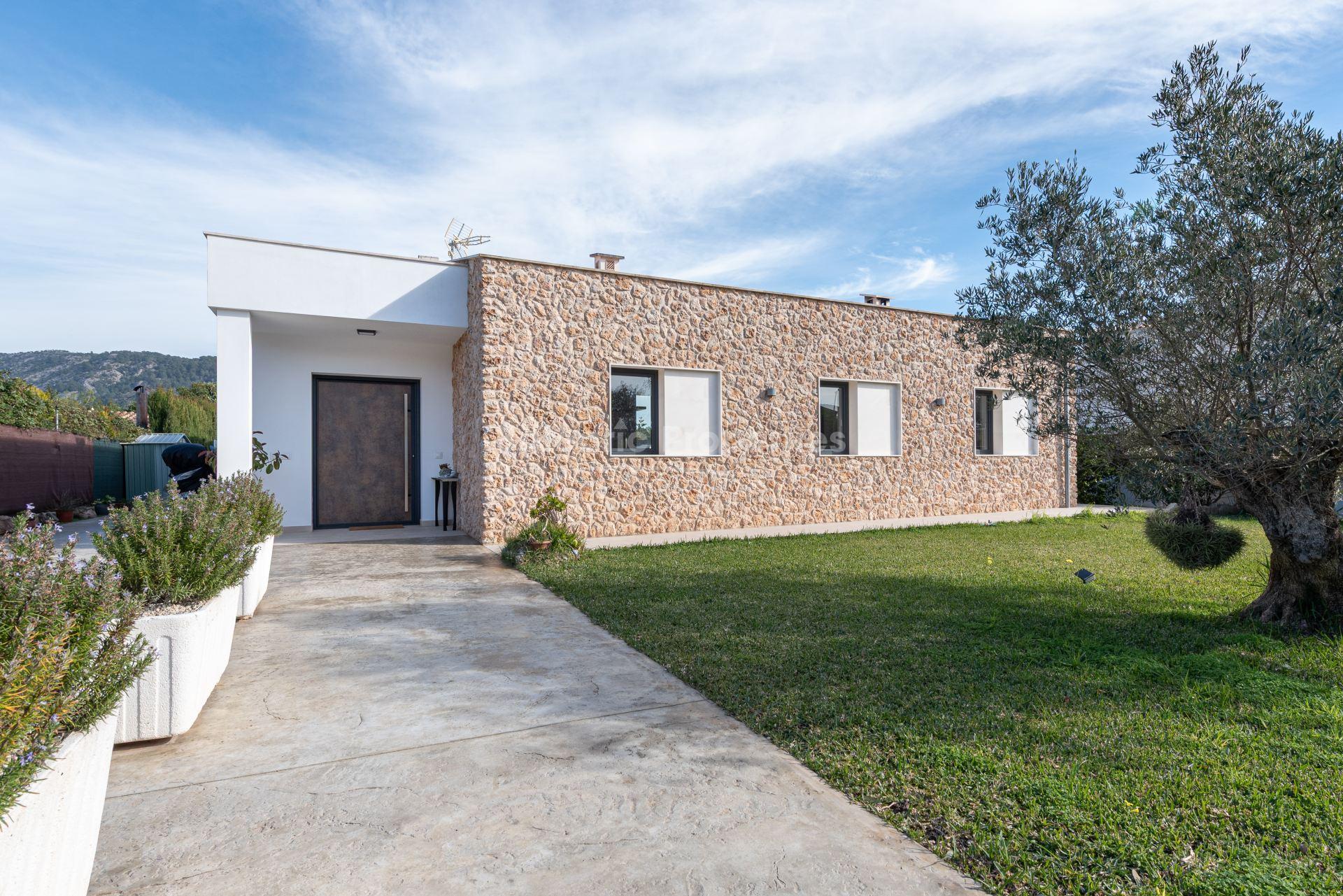 En venta en la codiciada zona de Crestatx, esta exquisita villa ofrece un refugio tranquilo y acogedor situado en una generosa parcela de casi 1.200 m². Terminada en 2021, la propiedad destaca por la calidad excepcional de sus materiales y su arquitectura cuidada, que equilibra perfectamente la amplitud, la luz natural y el confort.