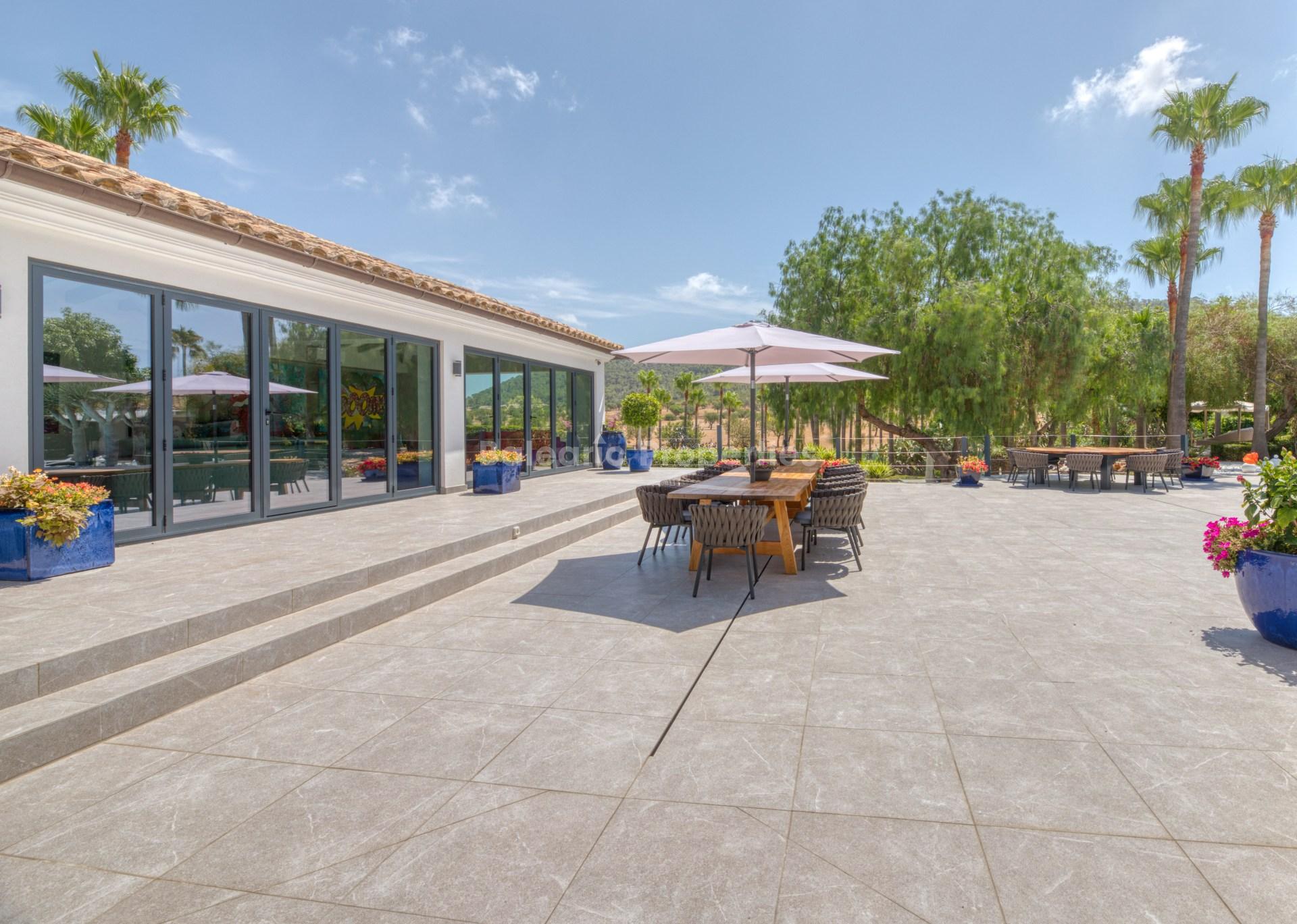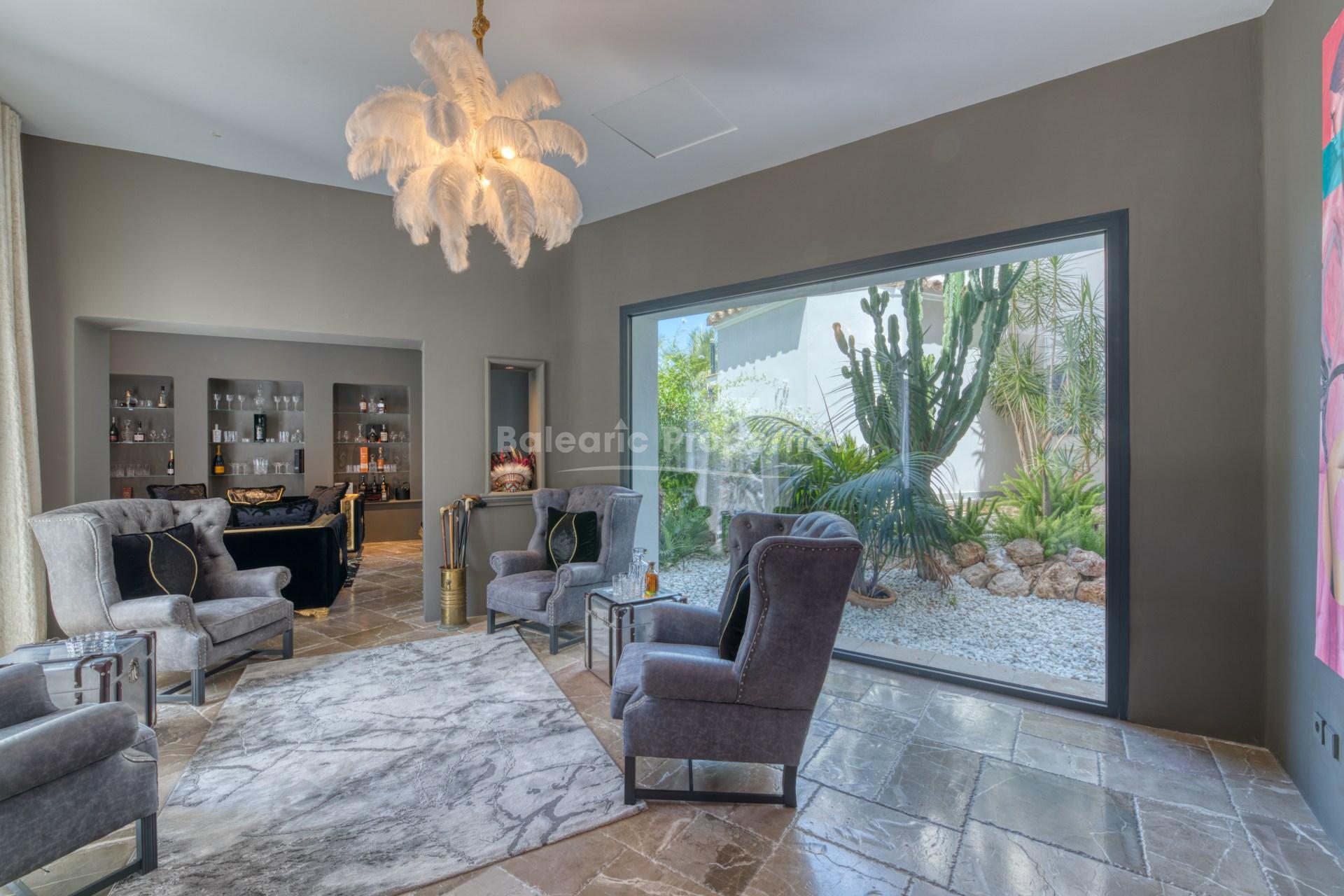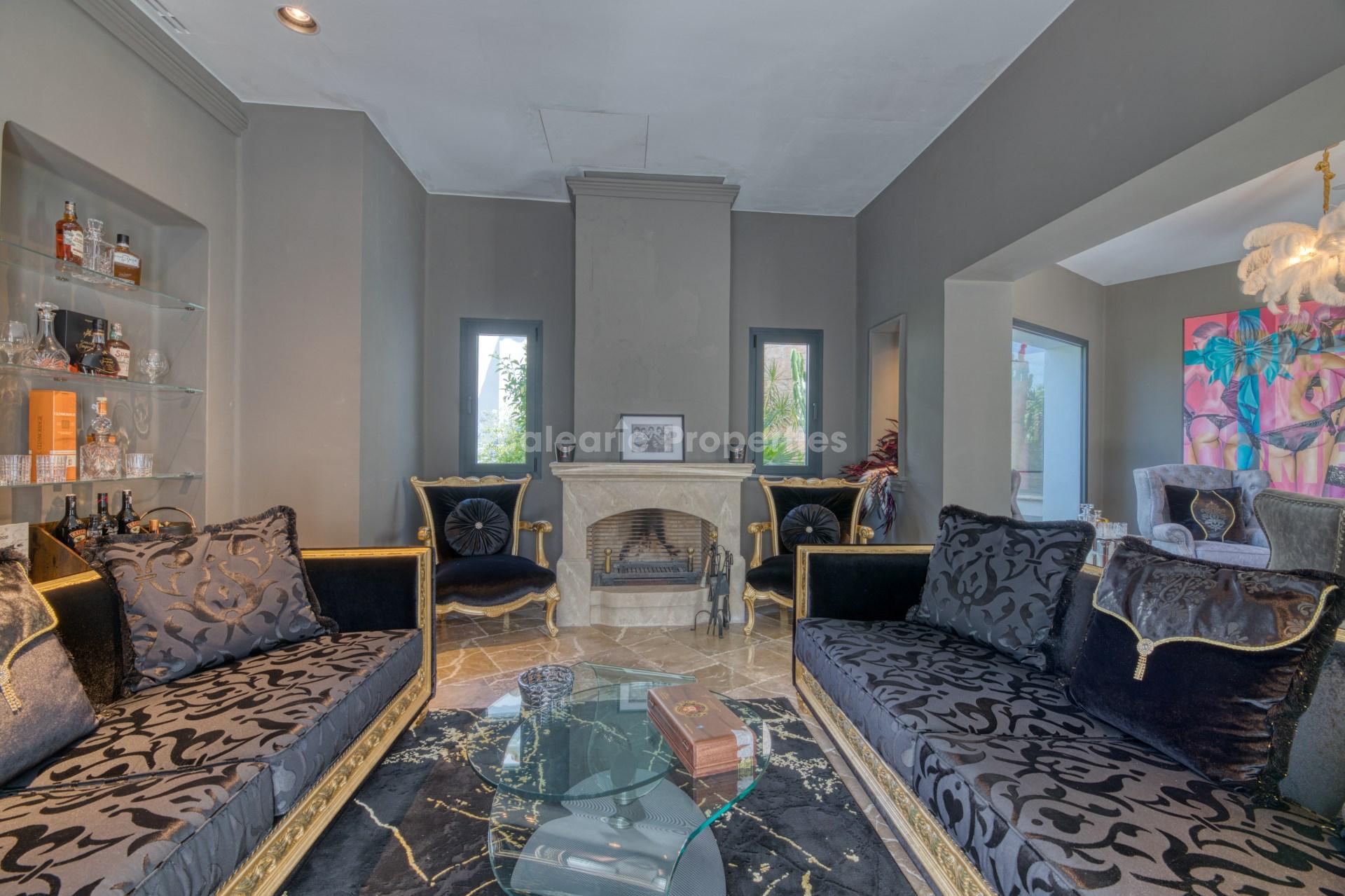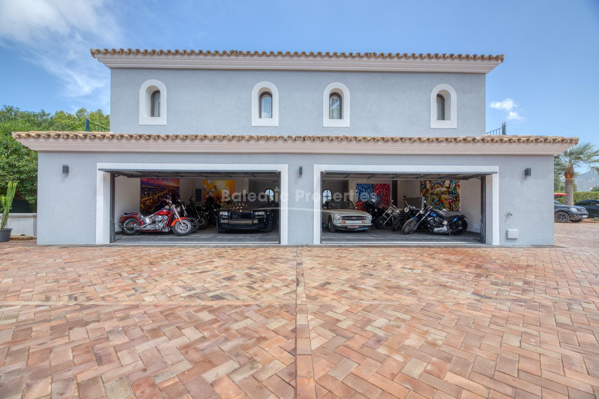 Los acabados de alta calidad incluyen suelos de piedra y madera, calefacción por suelo radiante, aire acondicionado y ventanas de aluminio con doble acristalamiento. La cocina, totalmente equipada, cuenta con electrodomésticos Gaggenau de primera calidad. Otros aspectos destacados son dos chimeneas de leña, una chimenea de bioetanol, vestidores, una bodega con sala de degustación o de puros y un completo sistema de sonido interior y exterior.