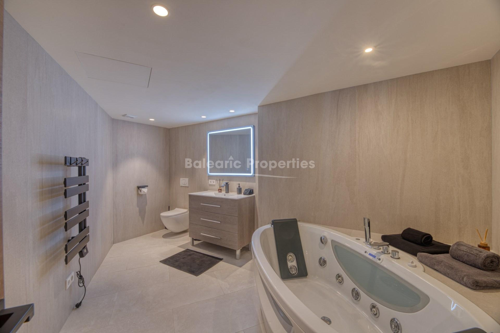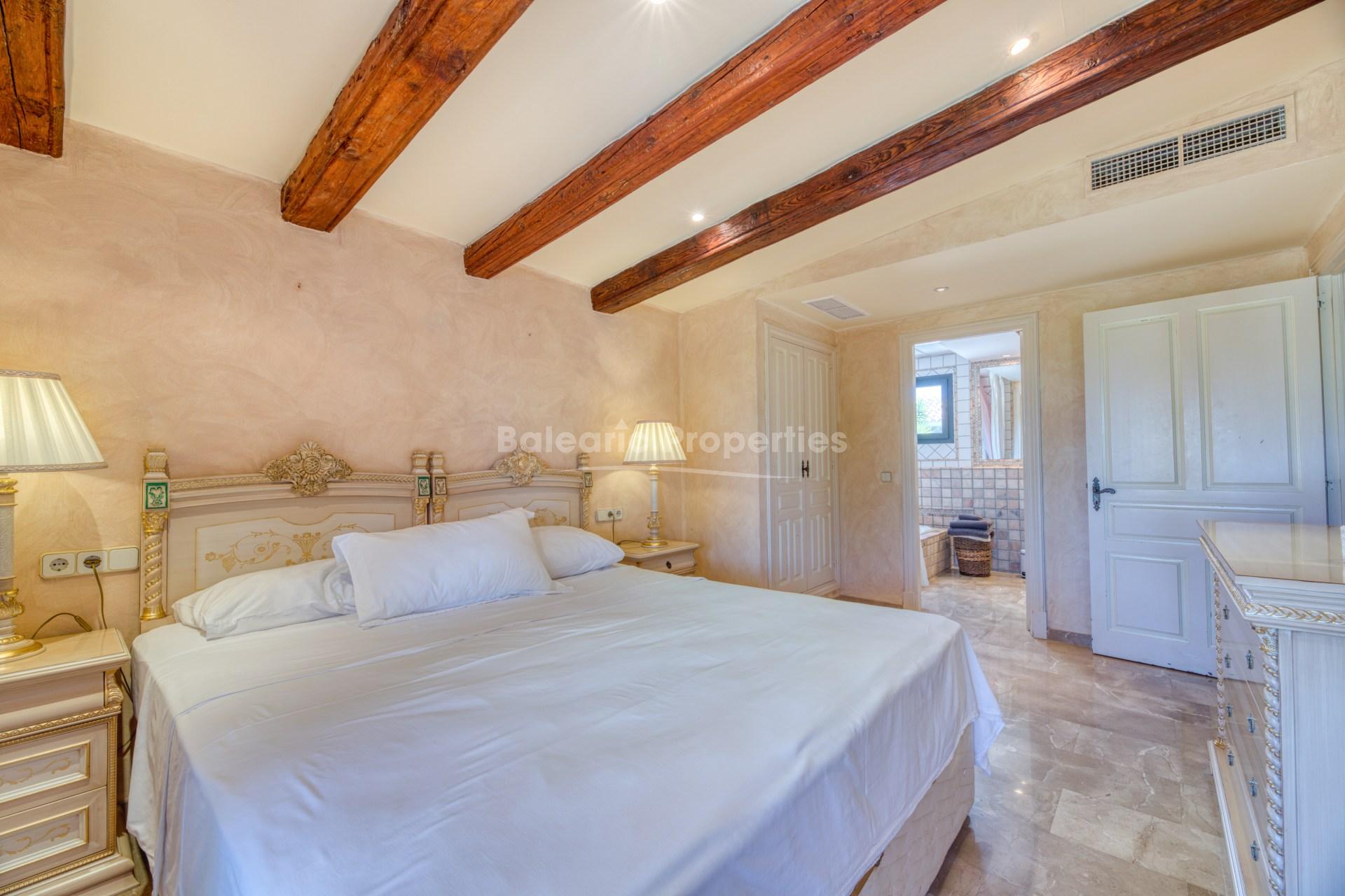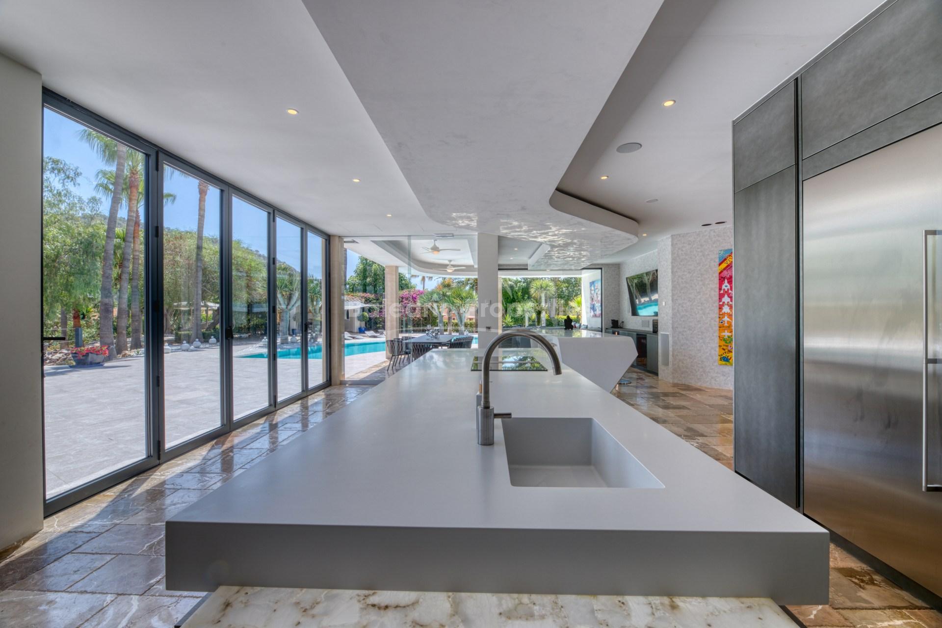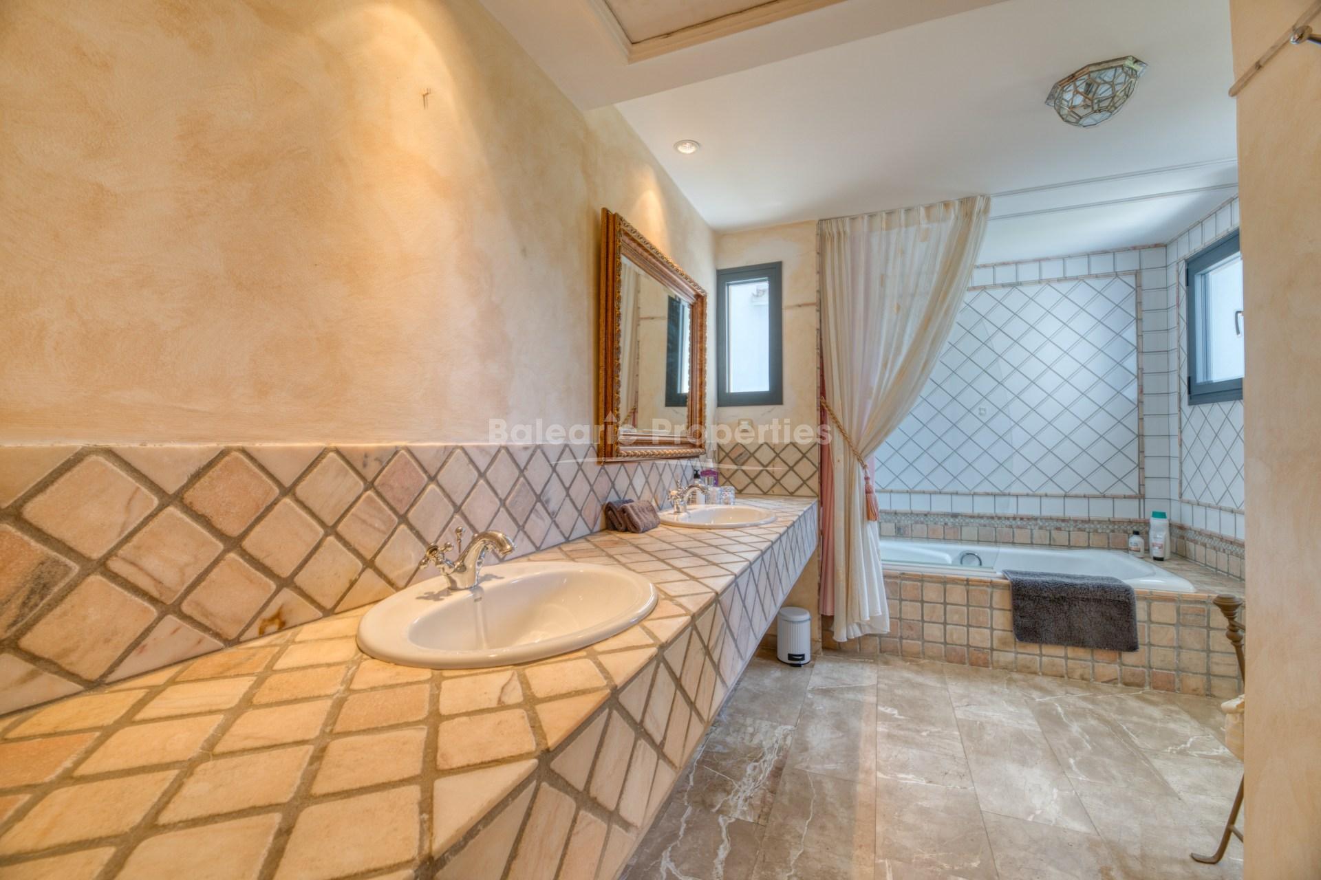 Los acabados de alta calidad incluyen suelos de piedra y madera, calefacción por suelo radiante, aire acondicionado y ventanas de aluminio con doble acristalamiento. La cocina, totalmente equipada, cuenta con electrodomésticos Gaggenau de primera calidad. Otros aspectos destacados son dos chimeneas de leña, una chimenea de bioetanol, vestidores, una bodega con sala de degustación o de puros y un completo sistema de sonido interior y exterior.