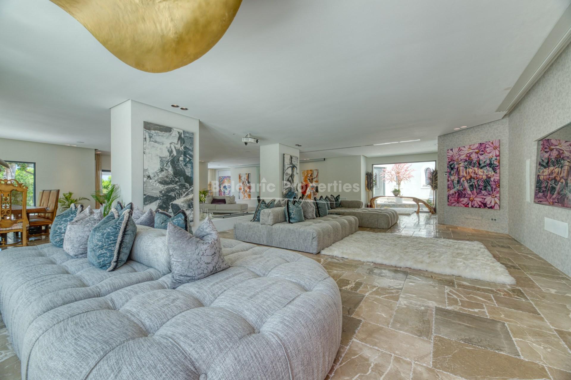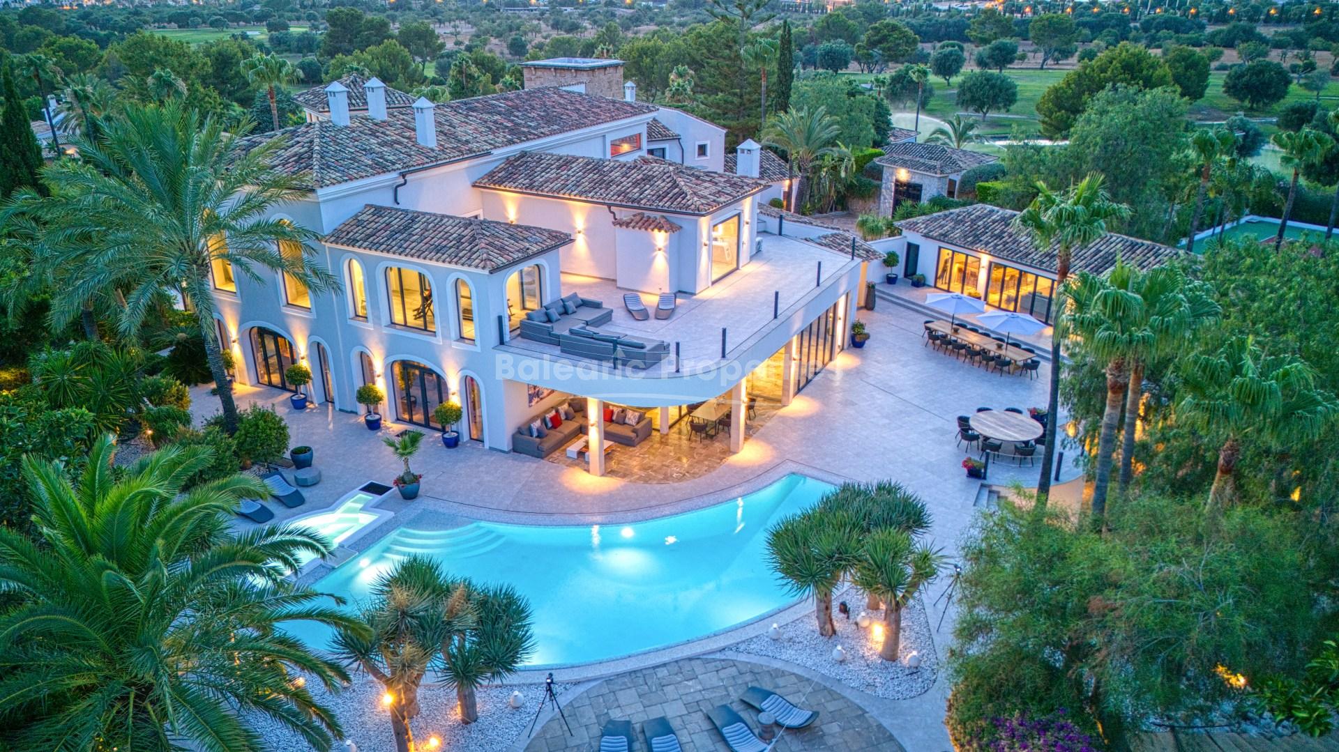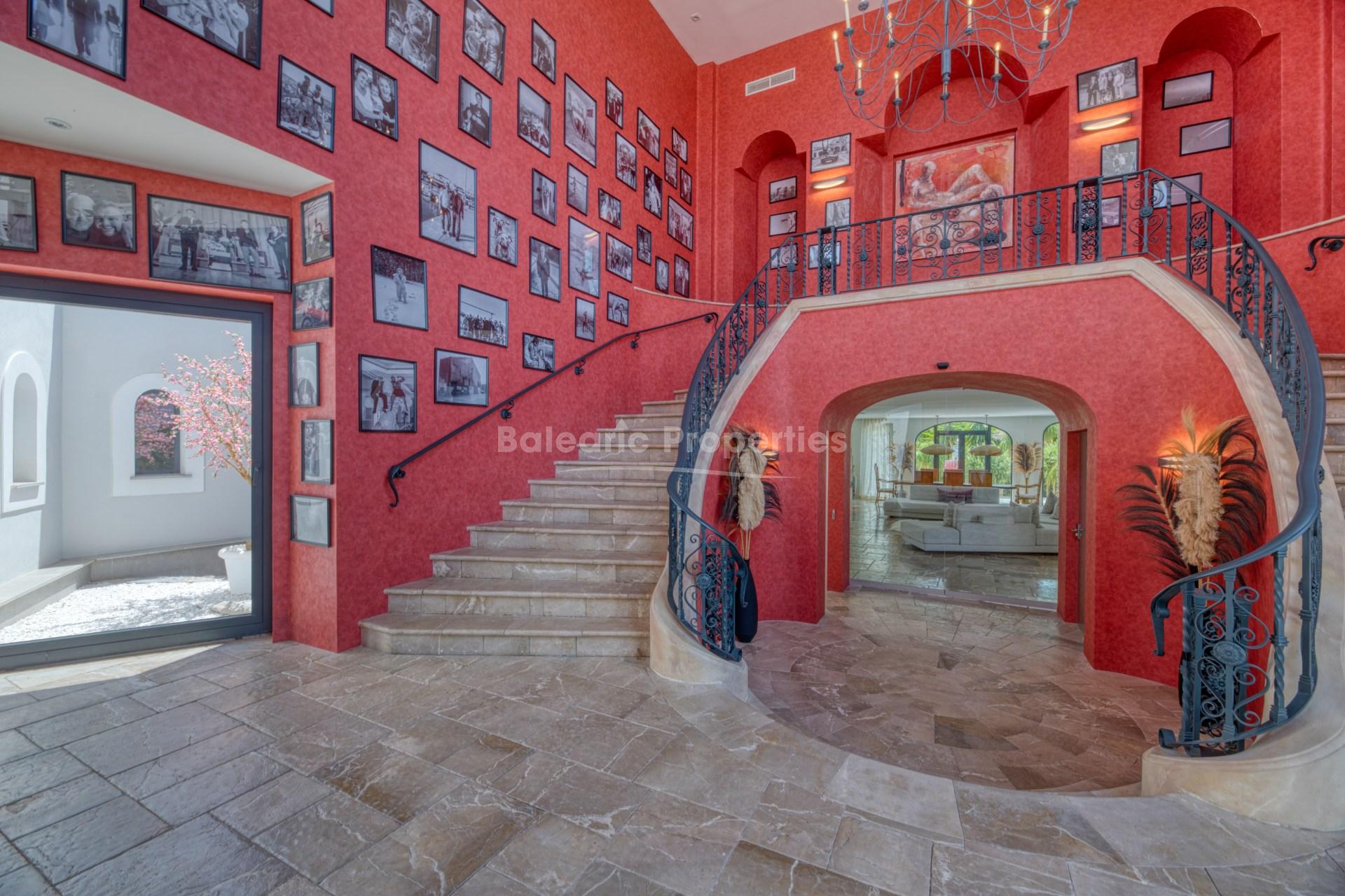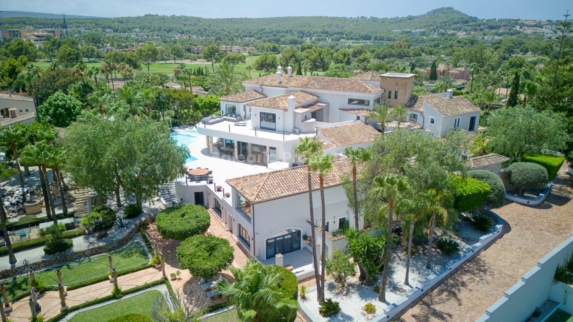 Esta impresionante mansión en venta en Santa Ponsa ofrece total privacidad, una pista de tenis privada, vistas panorámicas y acceso directo al campo de golf. Situada al final de una tranquila calle sin salida en una de las zonas residenciales más cotizadas del suroeste de Mallorca, esta mansión mediterránea orientada al sur disfruta de vistas abiertas a las calles del campo de golf, al campo circundante y a la sierra de Tramuntana, sin dejar de estar cerca de los servicios locales.