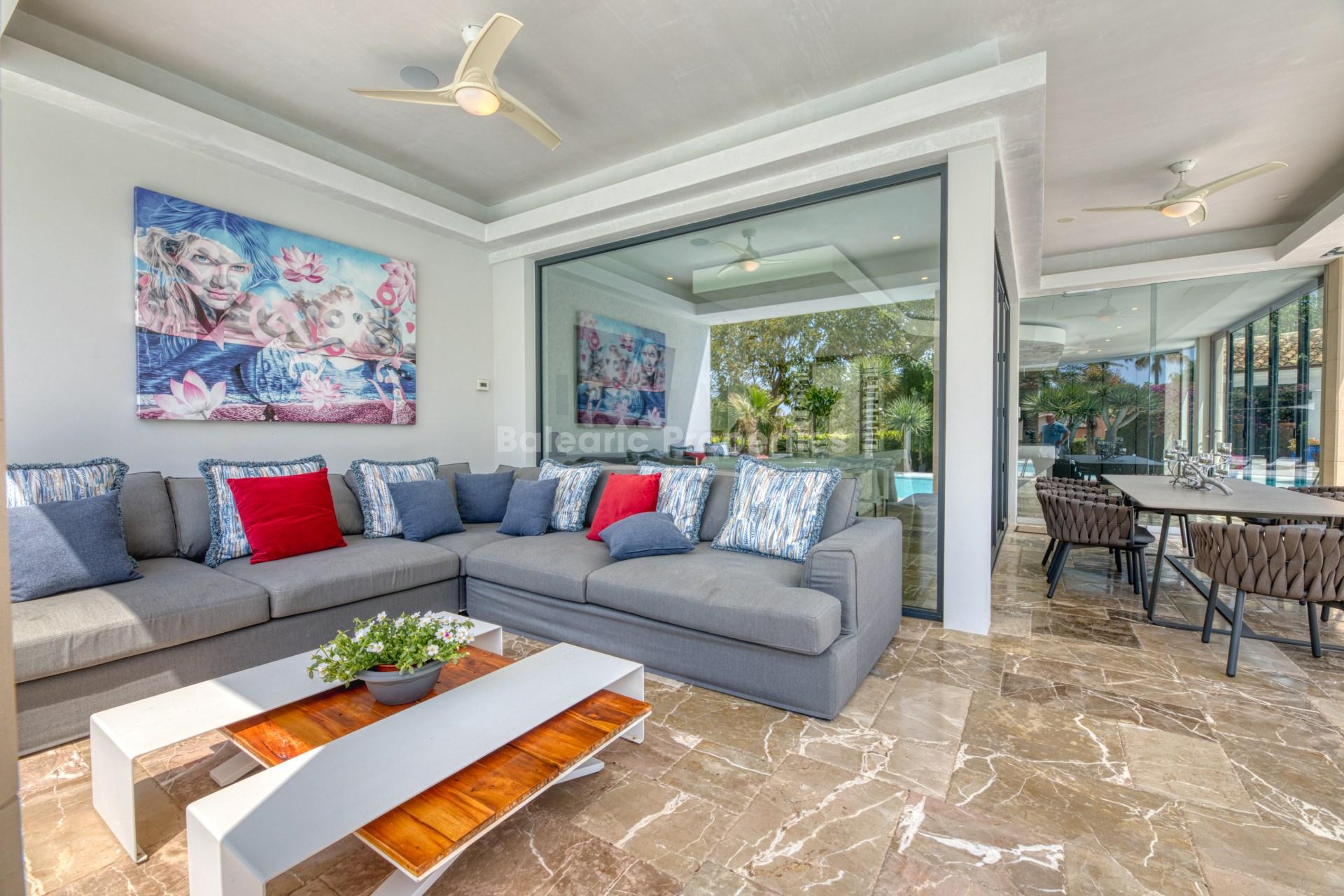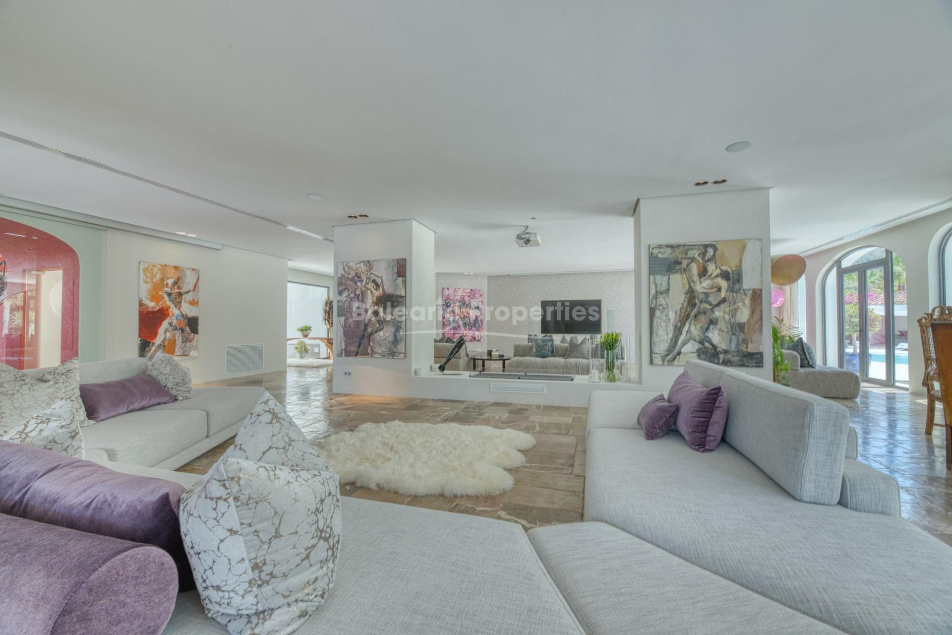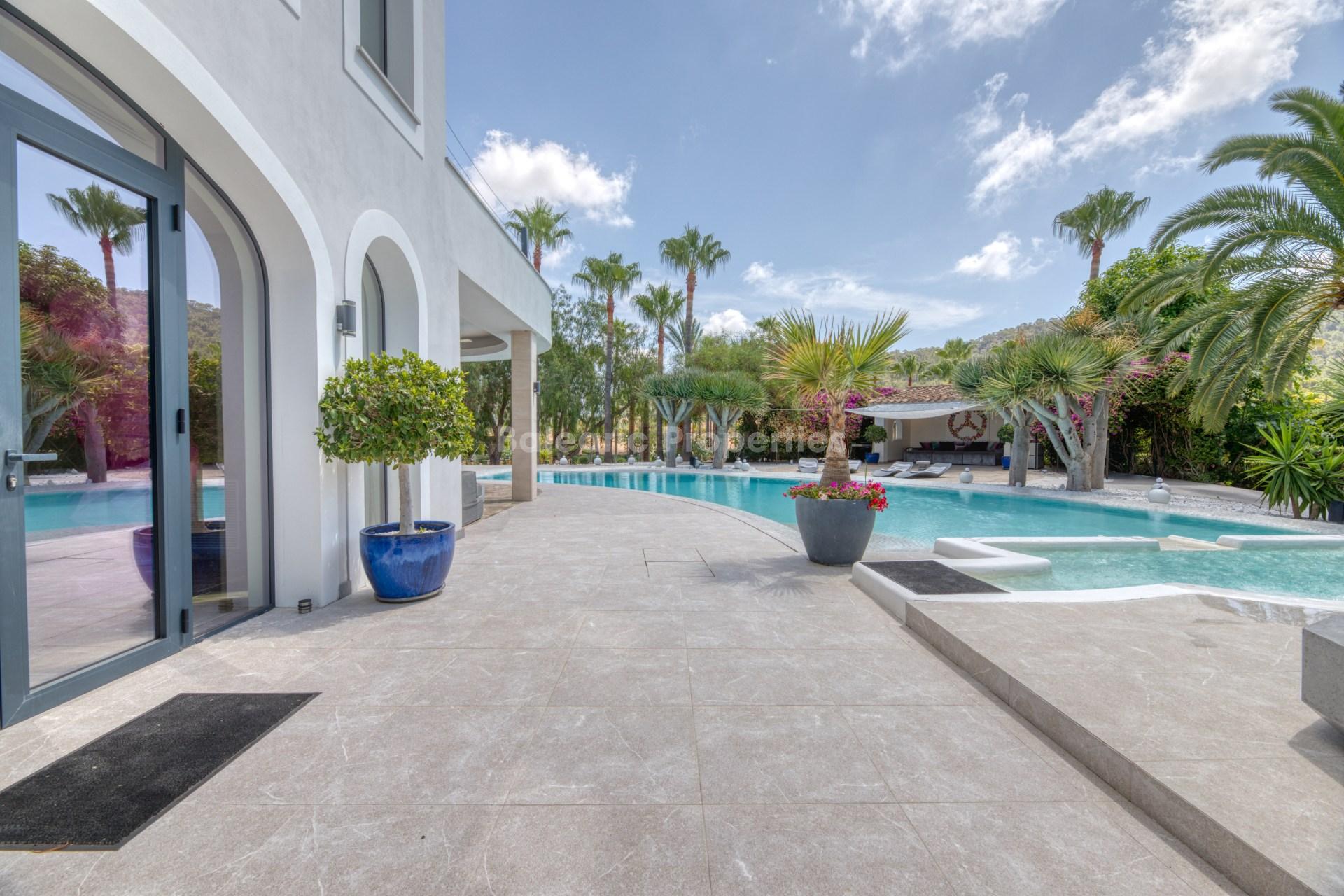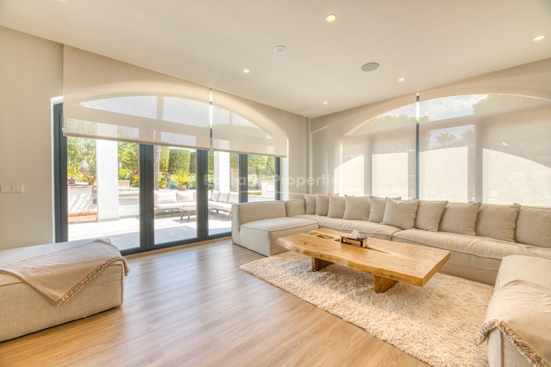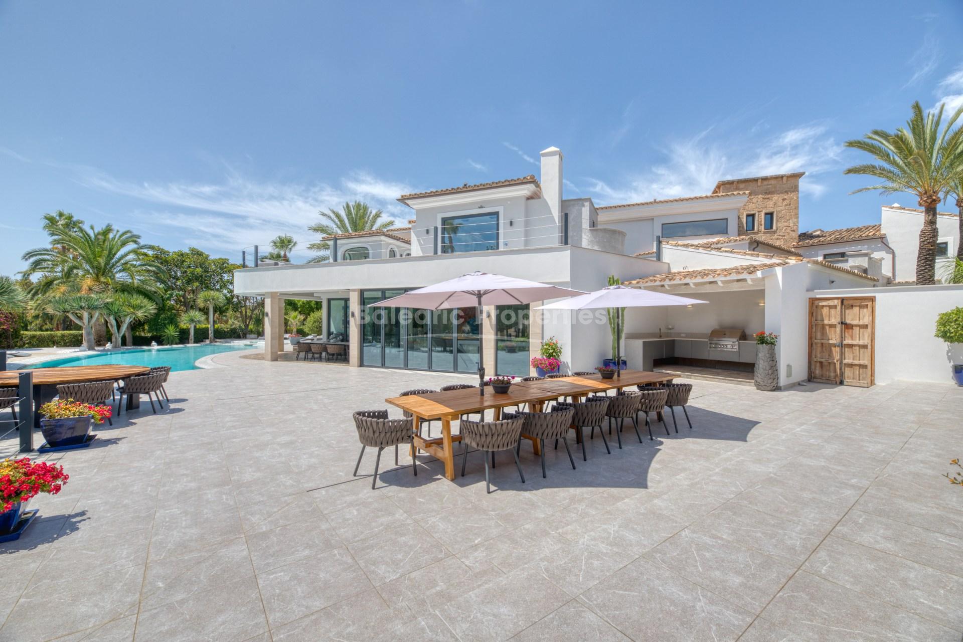 Esta impresionante mansión en venta en Santa Ponsa ofrece total privacidad, una pista de tenis privada, vistas panorámicas y acceso directo al campo de golf. Situada al final de una tranquila calle sin salida en una de las zonas residenciales más cotizadas del suroeste de Mallorca, esta mansión mediterránea orientada al sur disfruta de vistas abiertas a las calles del campo de golf, al campo circundante y a la sierra de Tramuntana, sin dejar de estar cerca de los servicios locales.