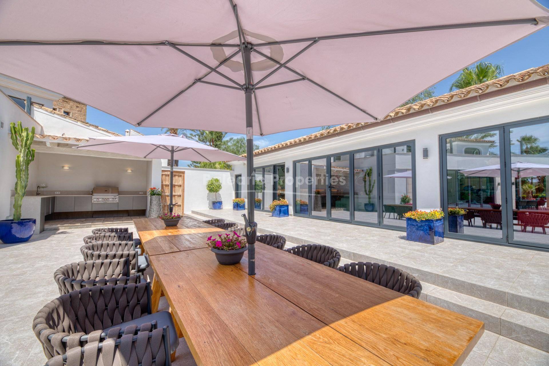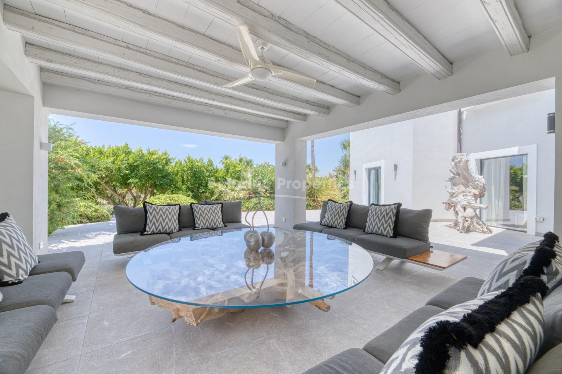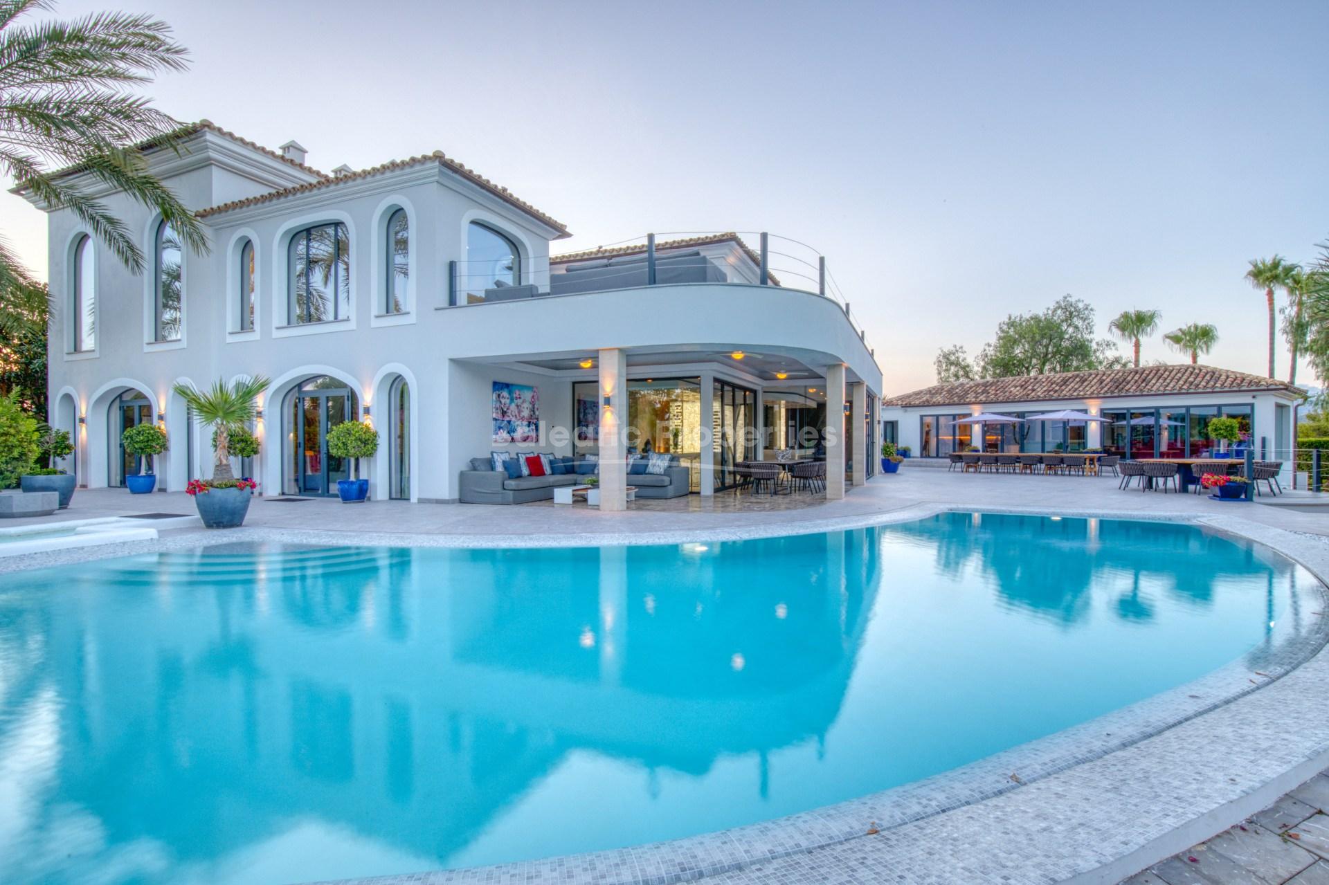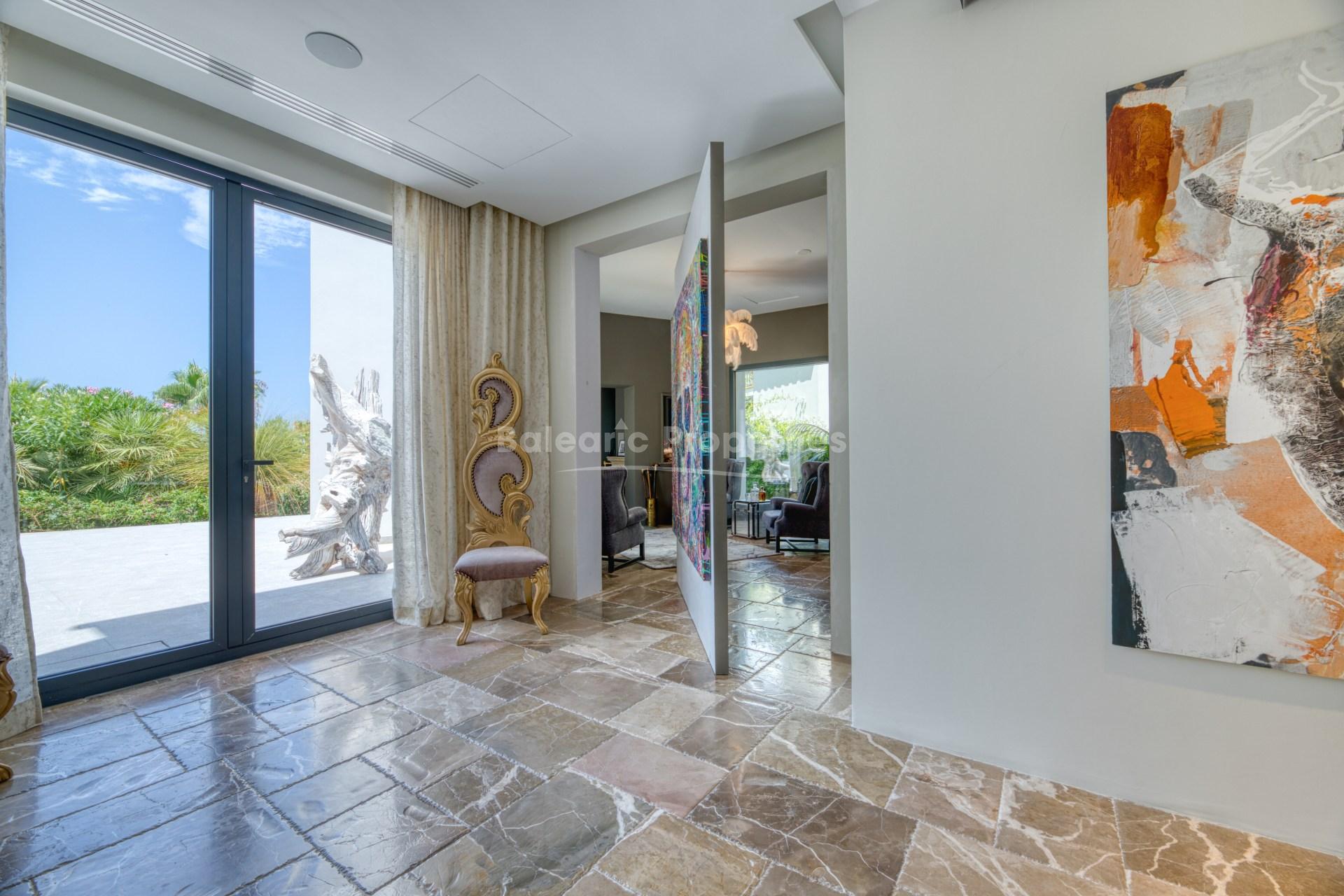 Esta impresionante mansión en venta en Santa Ponsa ofrece total privacidad, una pista de tenis privada, vistas panorámicas y acceso directo al campo de golf. Situada al final de una tranquila calle sin salida en una de las zonas residenciales más cotizadas del suroeste de Mallorca, esta mansión mediterránea orientada al sur disfruta de vistas abiertas a las calles del campo de golf, al campo circundante y a la sierra de Tramuntana, sin dejar de estar cerca de los servicios locales.