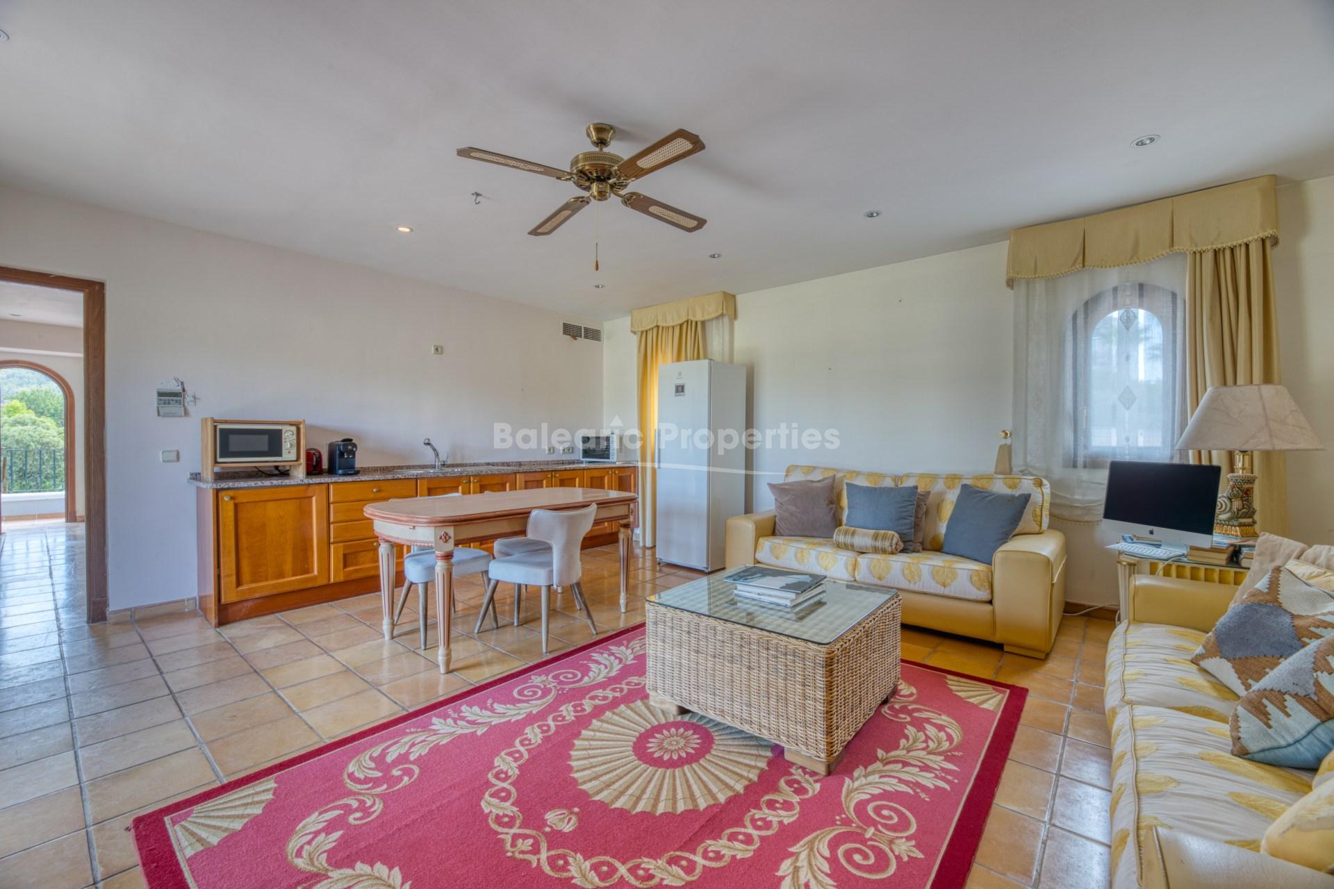 La propiedad está distribuida en dos plantas y se presenta en excelentes condiciones. Además de la residencia principal, tres apartamentos independientes para invitados ofrecen una flexibilidad excepcional para alojar a familiares y visitantes. En total, la finca cuenta con 15 dormitorios, 15 baños y un aseo para invitados, lo que la hace ideal como lujosa vivienda familiar, refugio corporativo o propiedad de inversión en Mallorca.