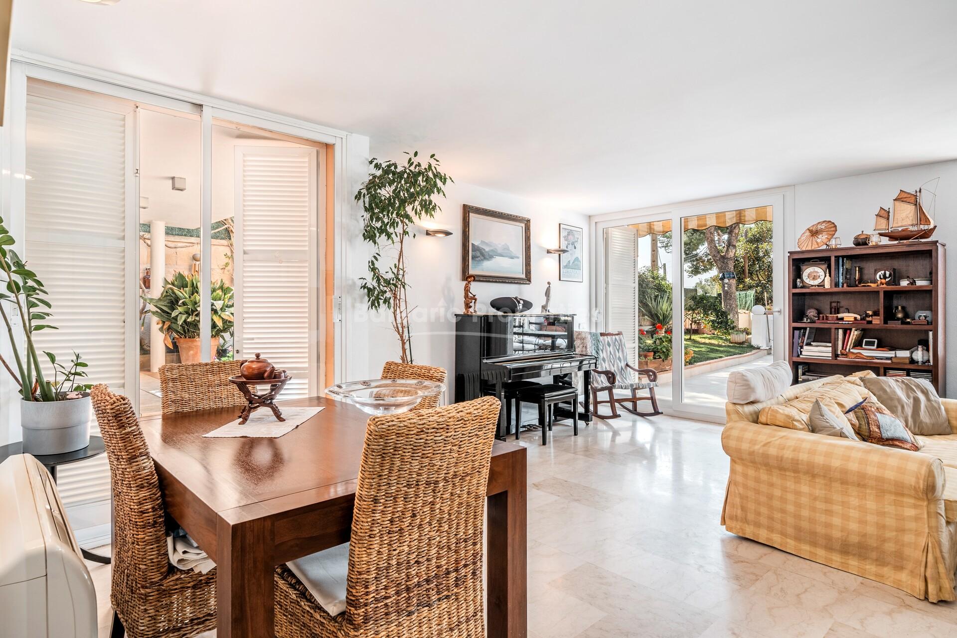 Situada en la codiciada zona residencial Portals Nous, esta casa adosada forma parte de una pequeña y tranquila comunidad de tan solo seis viviendas. Distribuida en tres plantas y orientada al sur, la propiedad disfruta de agradables vistas a los jardines y a la piscina comunitaria. Aunque la vivienda necesitaría algunas reformas, ofrece una excelente oportunidad para crear una cómoda residencia familiar en una de las ubicaciones costeras más deseadas de la isla. Su entorno tranquilo y sus amplios espacios exteriores proporcionan un estilo de vida relajado a poca distancia de los servicios locales.