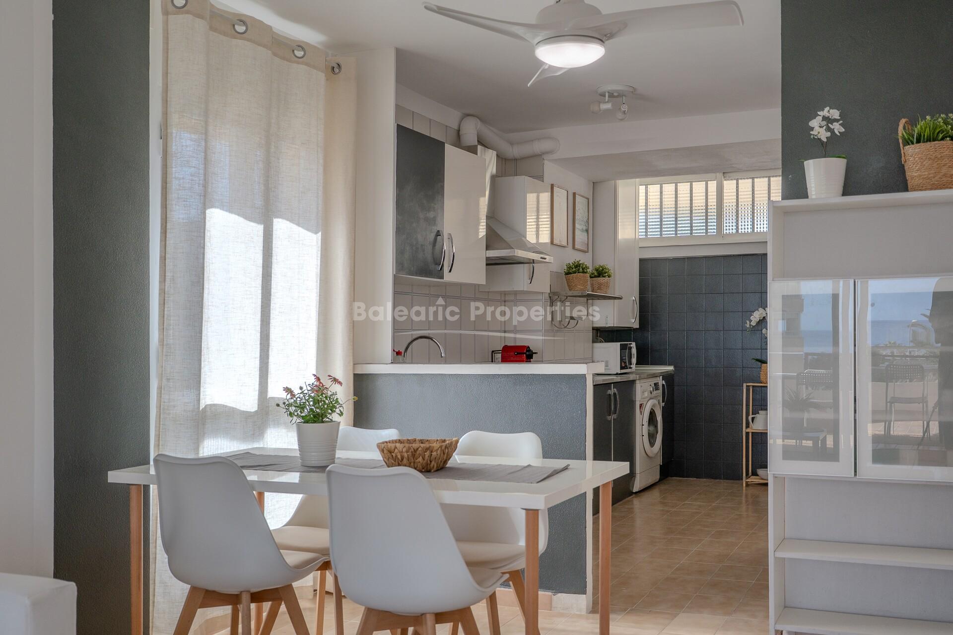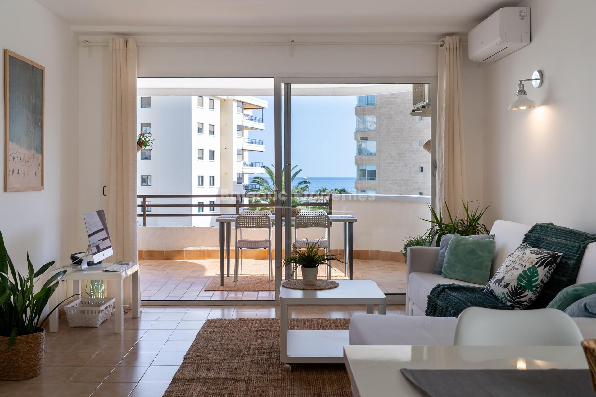 Ambos dormitorios son de buen tamaño. El dormitorio principal tiene acceso directo a la terraza y vistas al mar, mientras que el segundo dormitorio es ideal para invitados, familiares o como despacho.