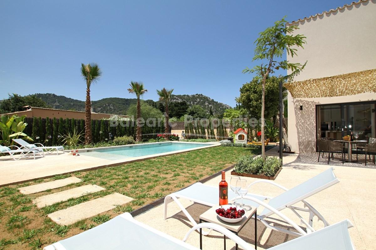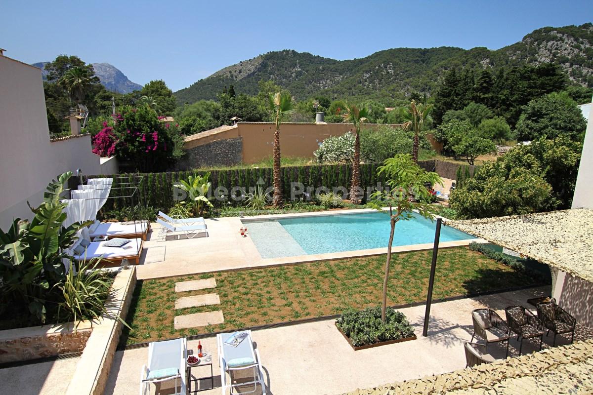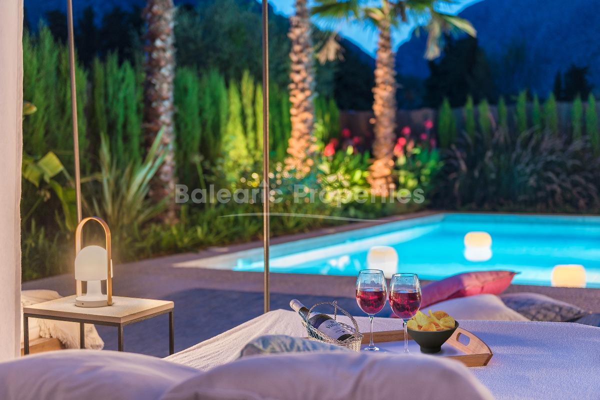 Esta villa de lujo de primera calidad ha sido completamente restaurada y ofrece excelentes comodidades, incluyendo una piscina privada climatizada con valla opcional, Smart TV, un sistema de música Sonos, tenis de mesa, juguetes para niños, aparcamiento privado y aire acondicionado en toda la casa. También goza de una ubicación exclusiva y tranquila con fabulosas vistas a la montaña, a las afueras del pueblo y a poca distancia a pie del centro histórico de Pollensa.