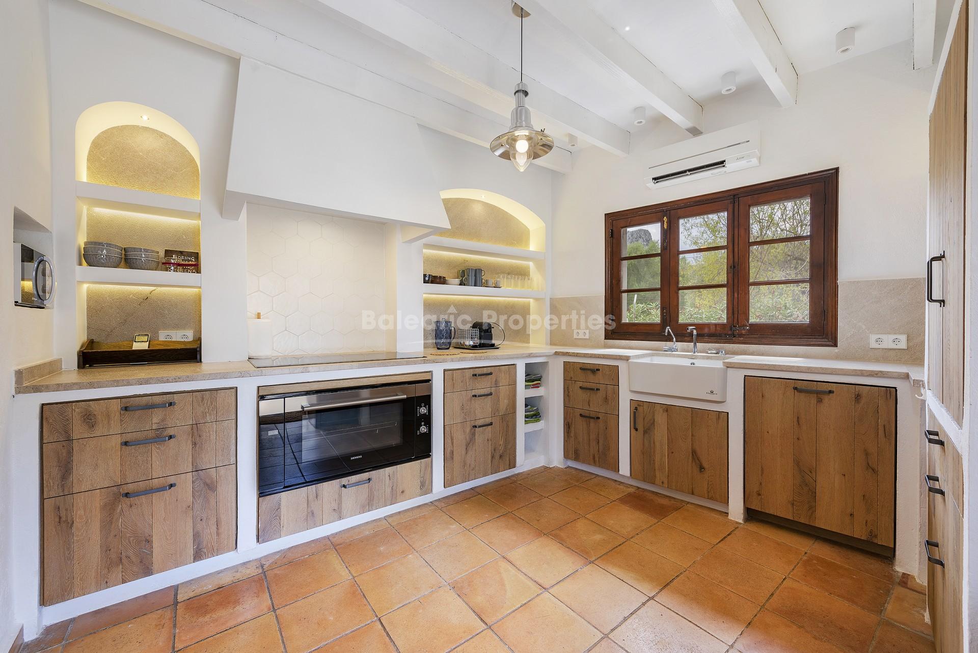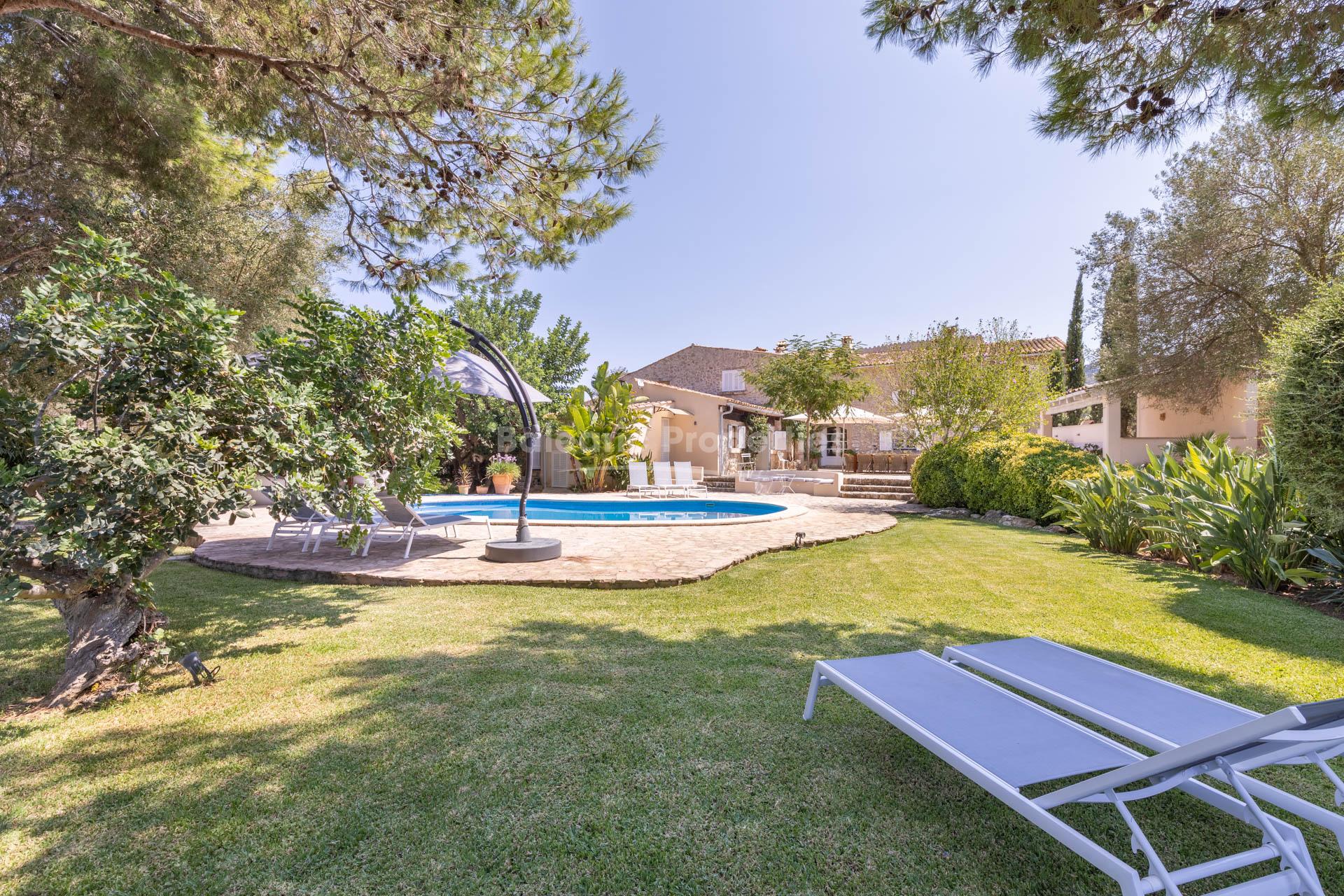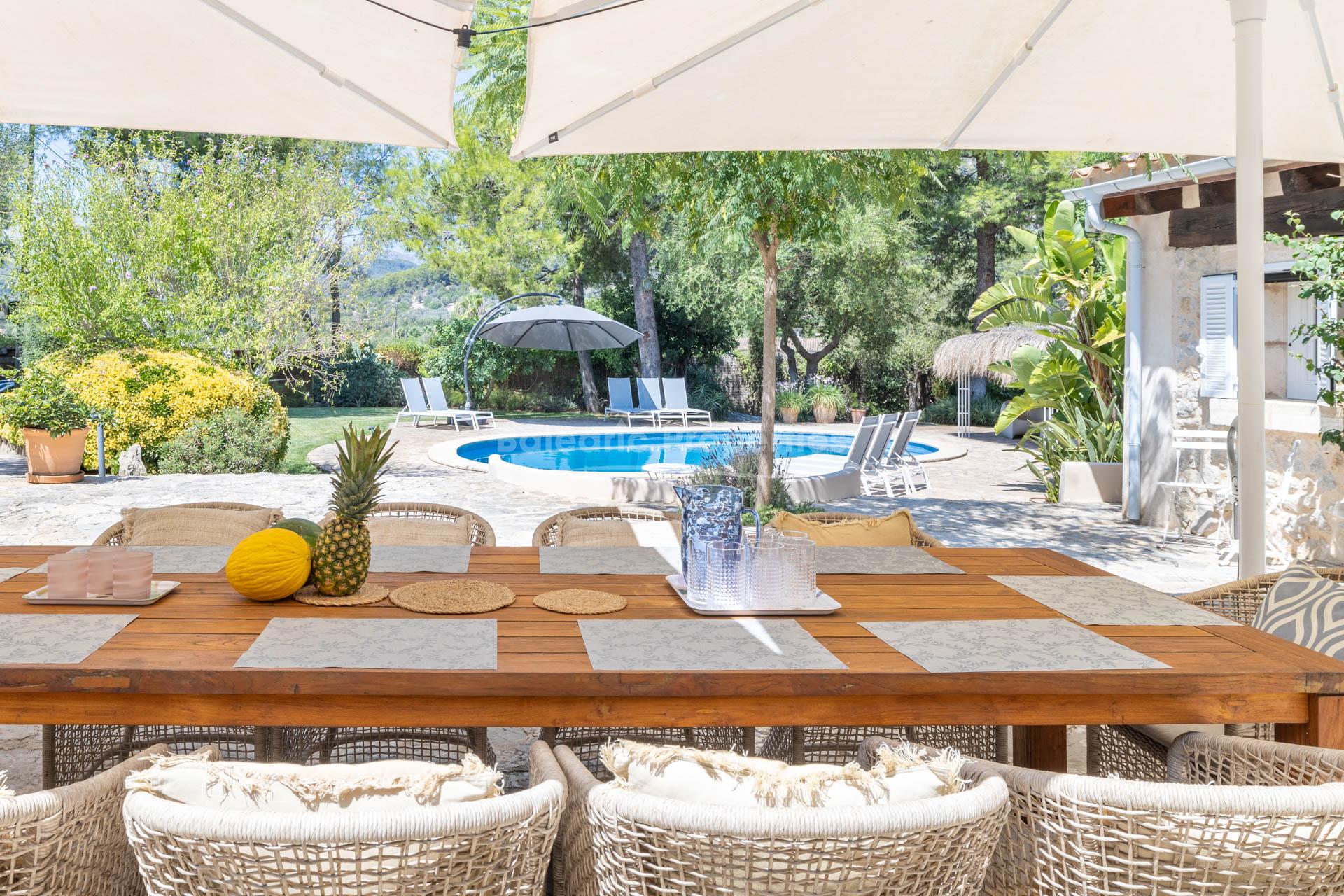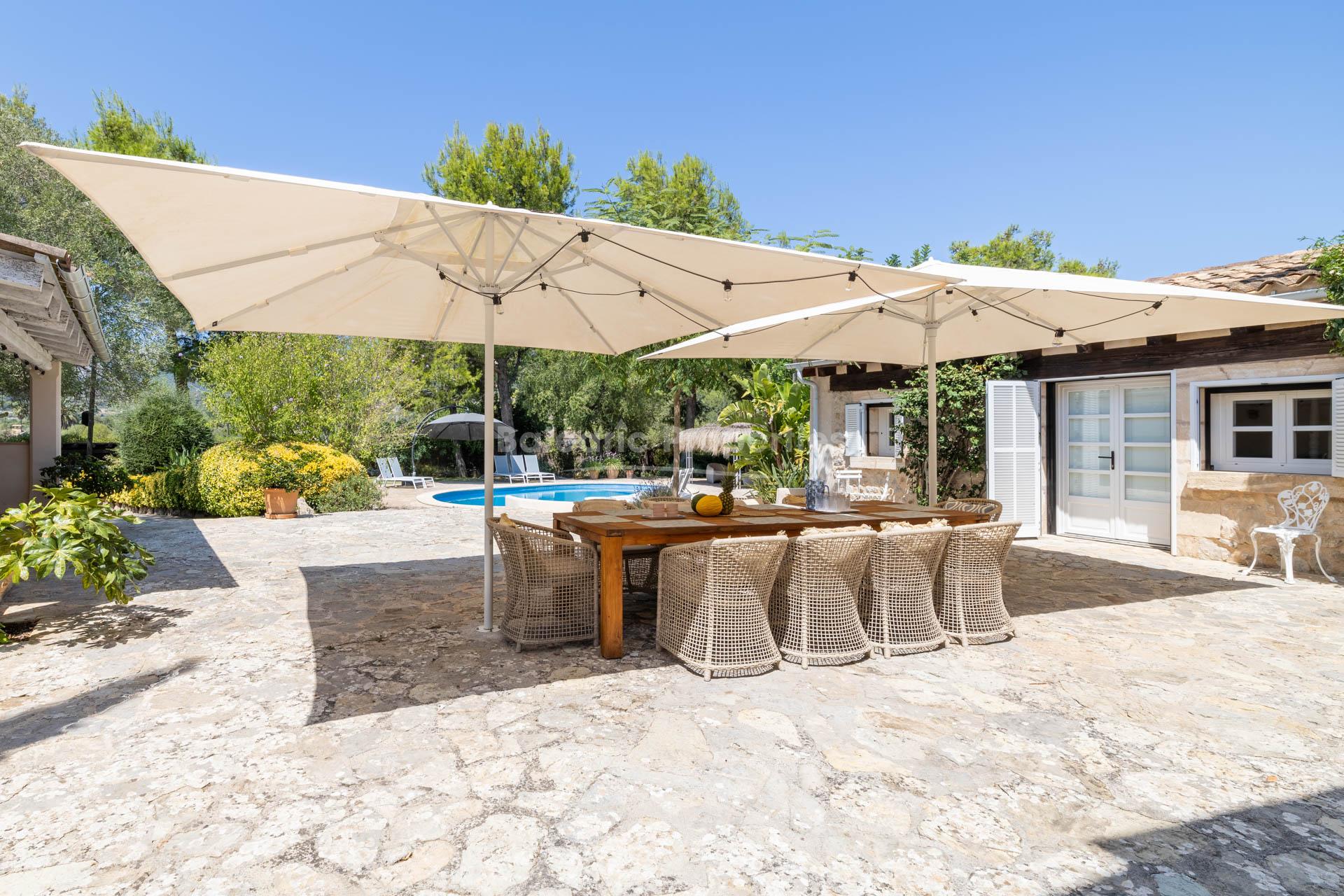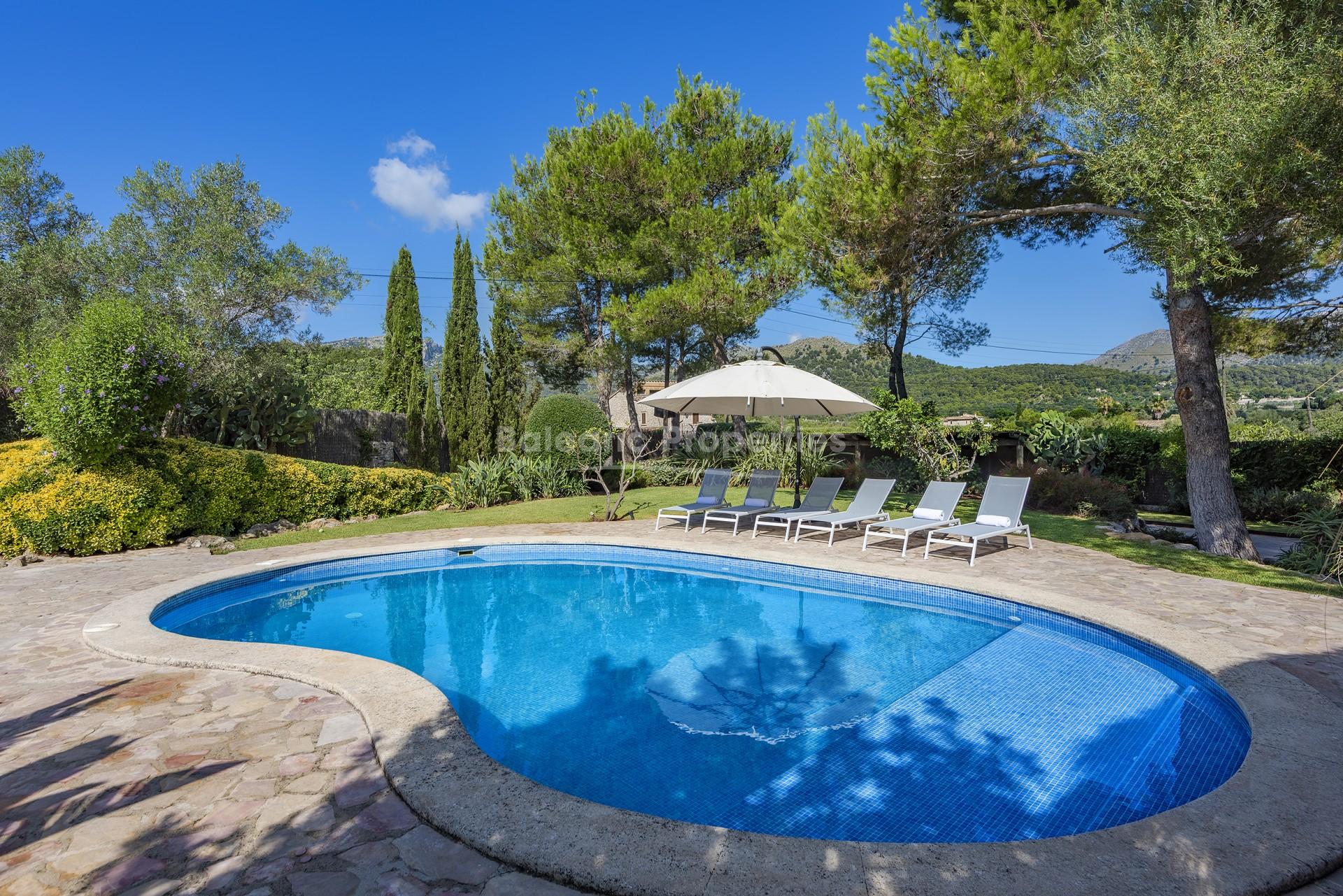 Esta villa de campo reformada - con casa de invitados, está disponible para alquilar con piscina privada e impresionantes vistas hacia la Sierra de Tramuntana, ¡idealmente situada a pocos minutos del precioso casco antiguo de Pollensa en el norte de Mallorca!