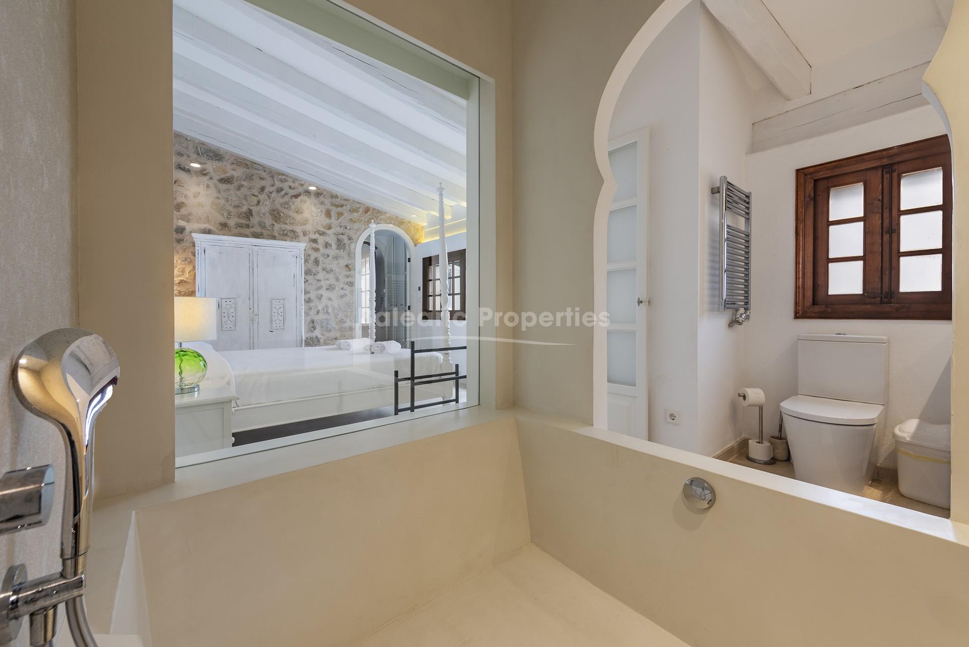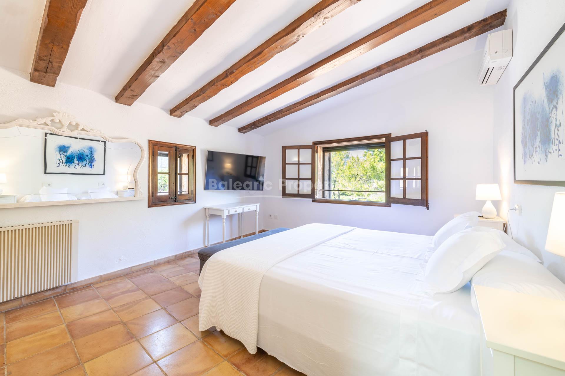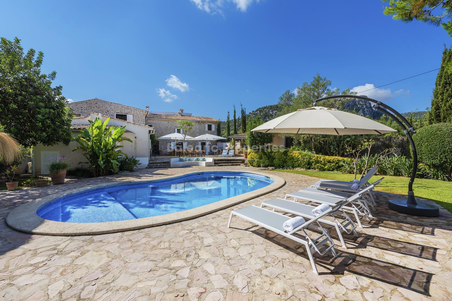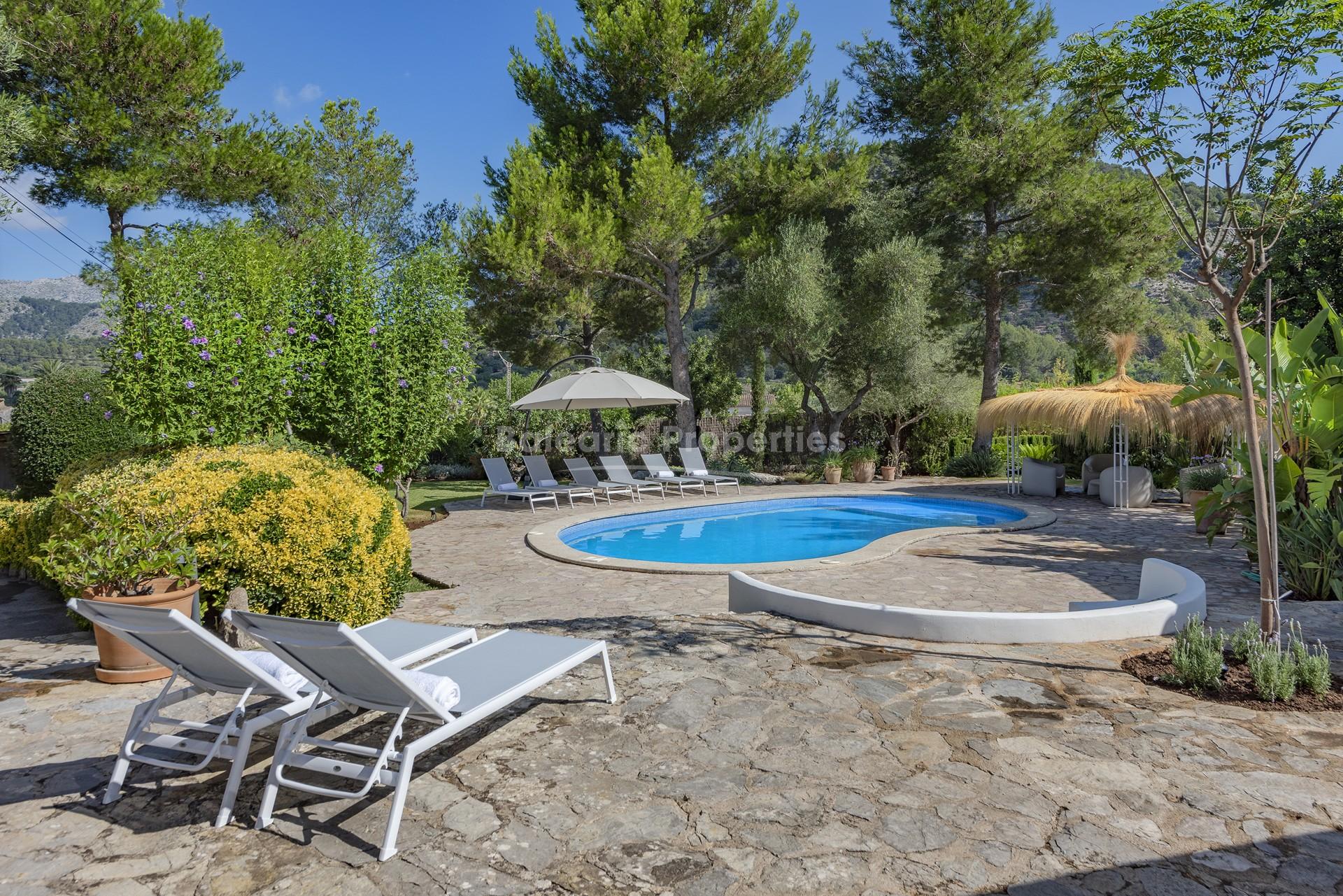 Esta villa de campo reformada - con casa de invitados, está disponible para alquilar con piscina privada e impresionantes vistas hacia la Sierra de Tramuntana, ¡idealmente situada a pocos minutos del precioso casco antiguo de Pollensa en el norte de Mallorca!