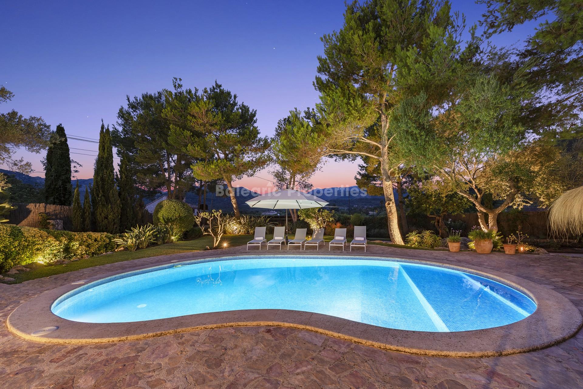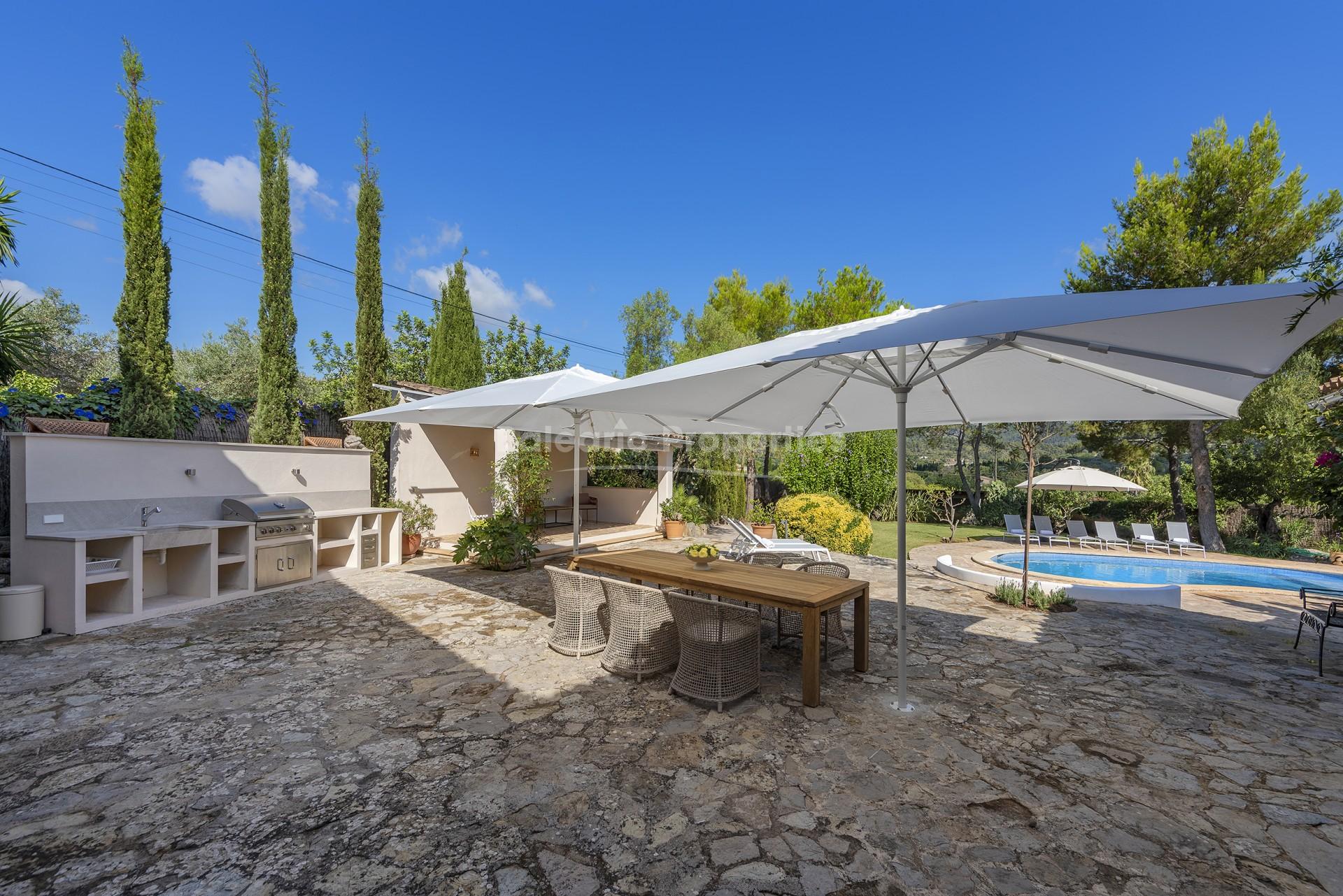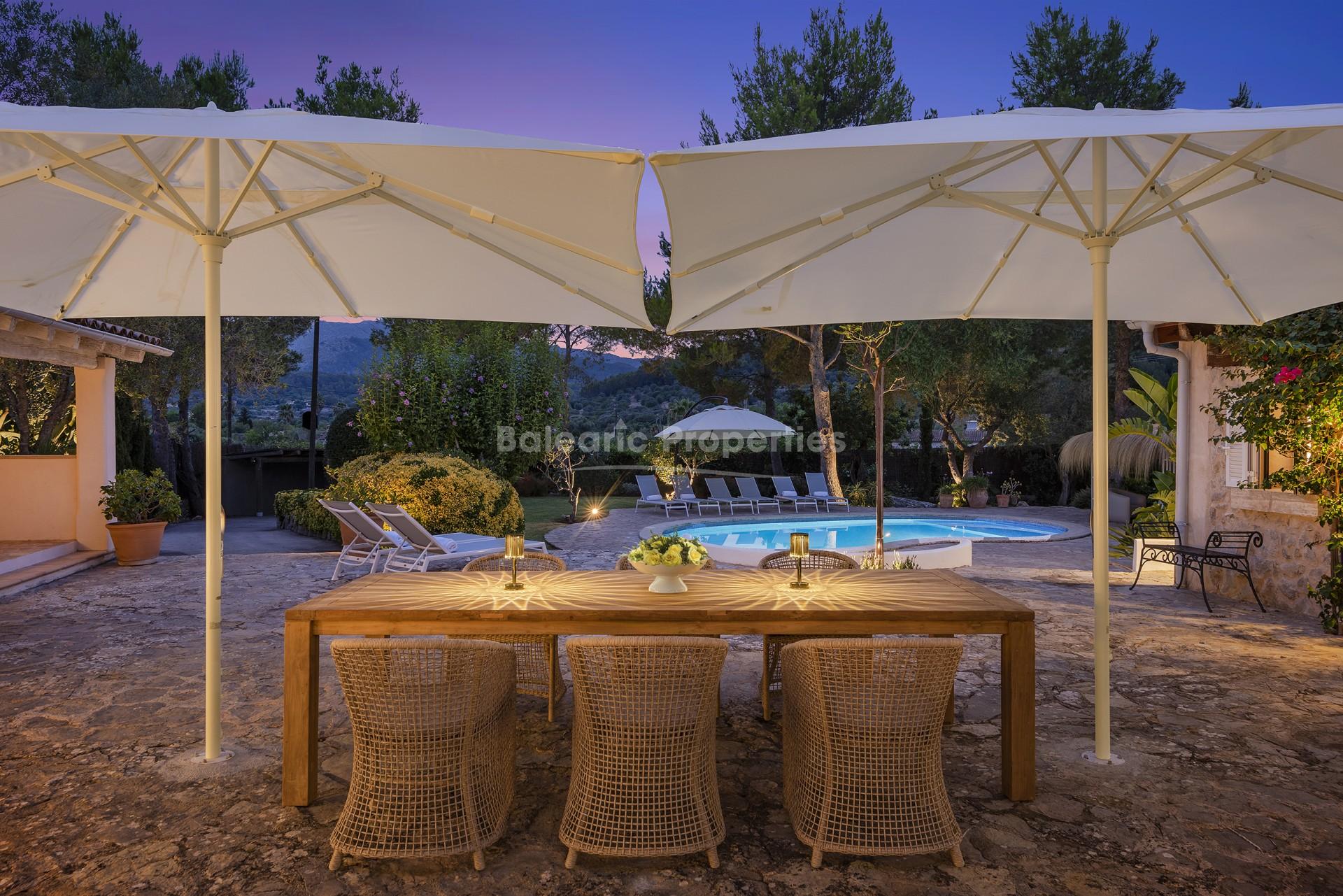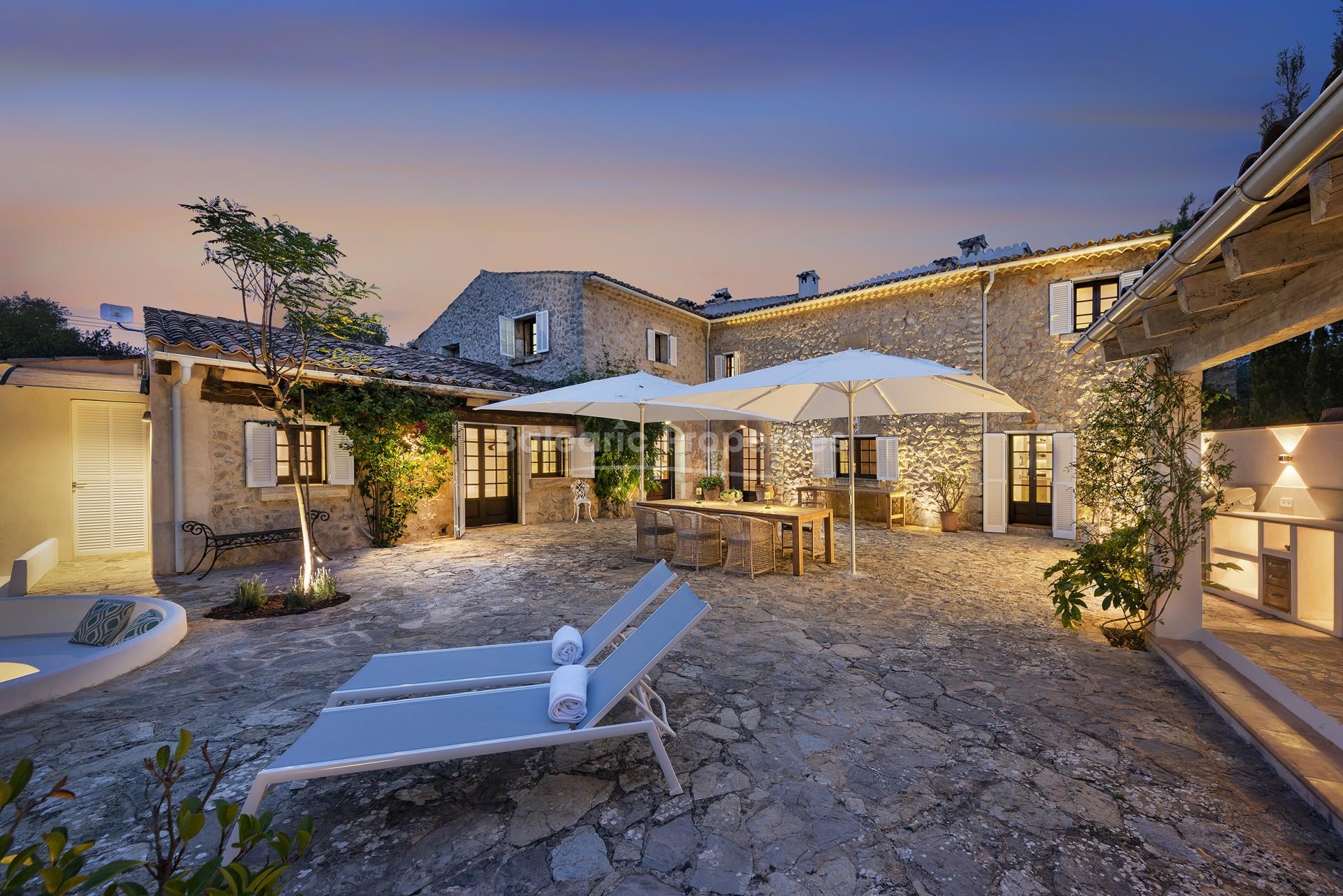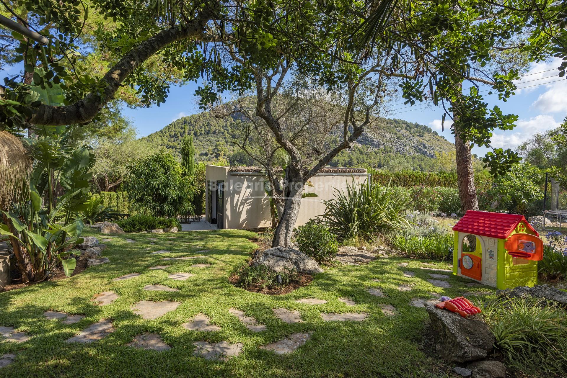 Esta villa de campo reformada - con casa de invitados, está disponible para alquilar con piscina privada e impresionantes vistas hacia la Sierra de Tramuntana, ¡idealmente situada a pocos minutos del precioso casco antiguo de Pollensa en el norte de Mallorca!