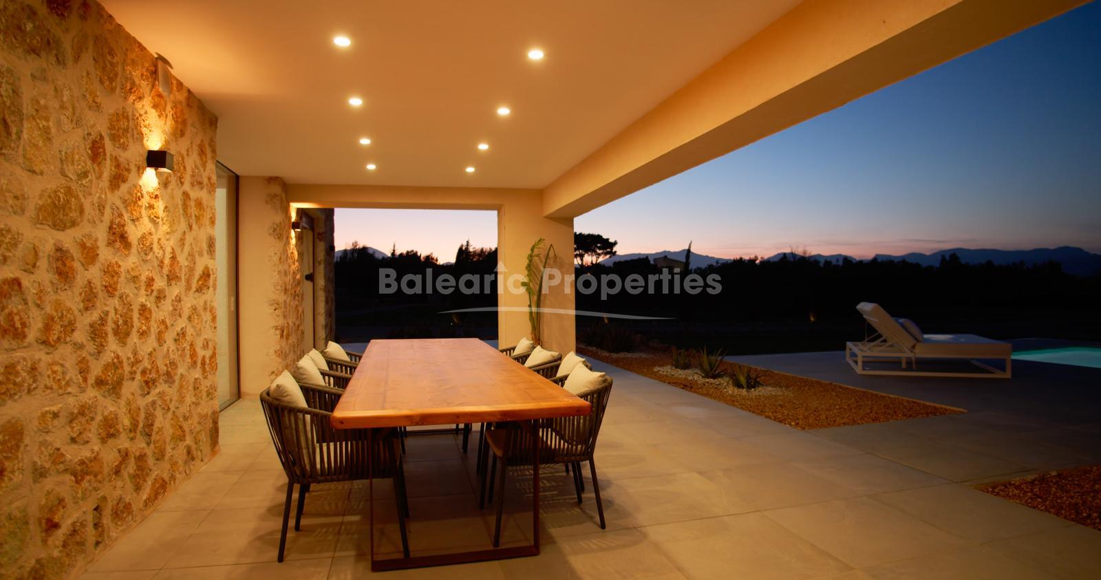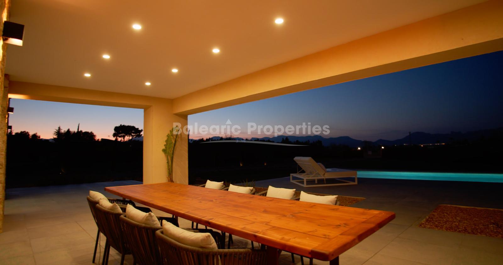 Desde esta zona principal se accede directamente al exterior, donde encontramos una espectacular zona cubierta, convenientemente iluminada, ideal para disfrutar durante todo el año y con impresionantes vistas abiertas al jardín y a la piscina.